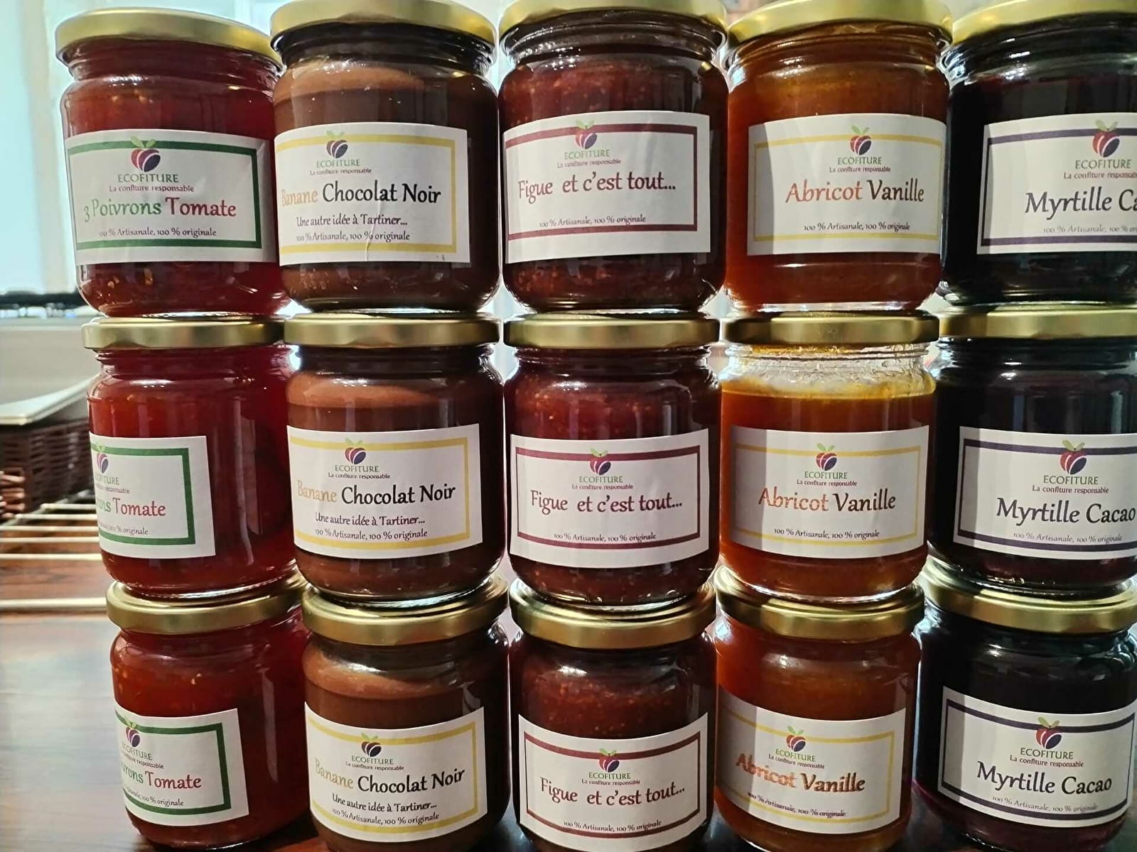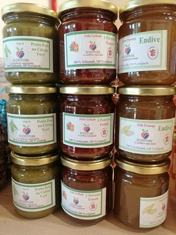 ECOFITURE prépare des confitures uniques et gourmandes 100 % naturelles avec des fruits et légumes invendus de la grande distribution. L'association permet de valoriser ces fruits et légumes "moches" en confectionnant des confitures, coulis, confits, huiles et vinaigres aux saveurs originales et authentiques, et souvent en édition limitée.