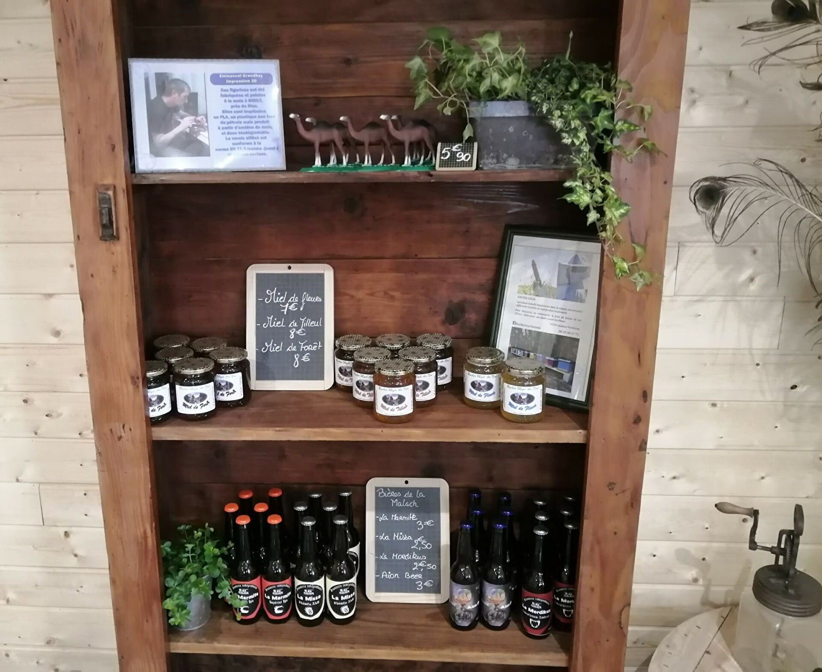 Boutique de vente directe : fromages de chèvre et produits en circuits-courts de producteurs alentours (bière, miel, limonade, ...)