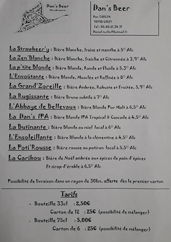La brasserie Dan's Beer, installée au Dan's Bar, est tenue par Daniel, il vous propose une large gamme de bières artisanales : blanches, blondes, ambrées, avec différentes saveurs qui varient selon la saison.