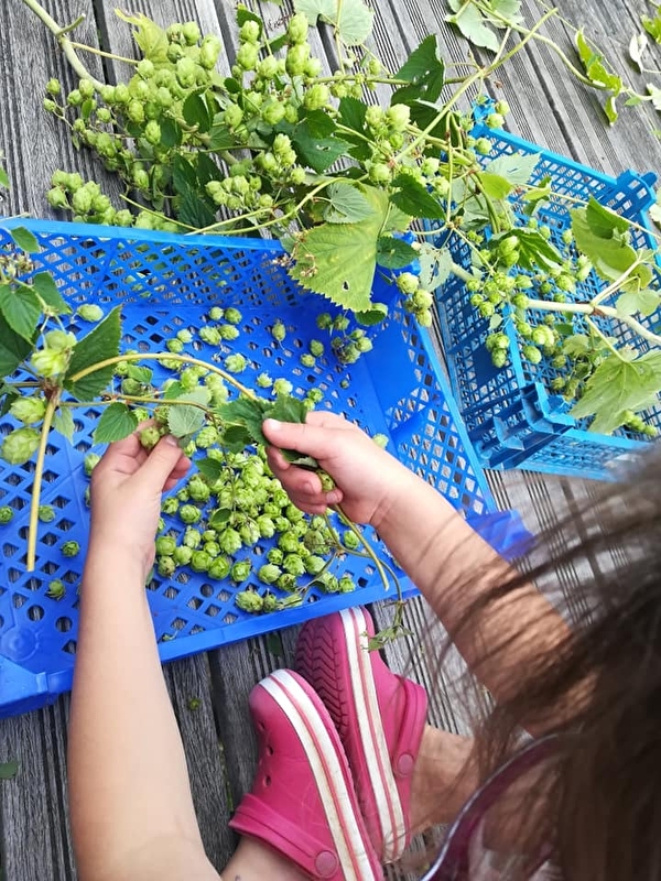 Même si la production est confidentielle, il est à noter que Hélène MAS produit son propre houblon ! Les assemblages sont réalisés avec des produits locaux (fleurs cueillies à la main, pommes, cerises et mirabelles récoltées autour de Dung …), même le miel est “fait-maison” grâce aux ruches installées sur la propriété.