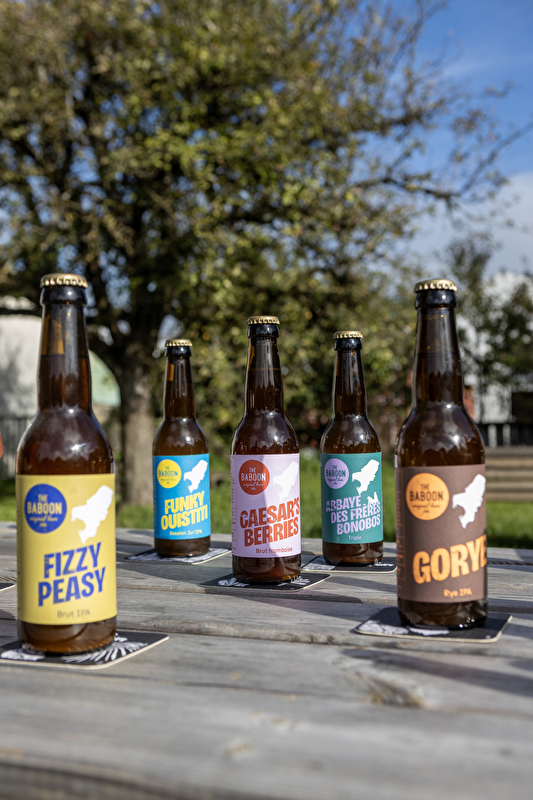 La Brasserie des Babouins Jurassiens est une brasserie artisanale fondée le 14 Août 2114 par 2 jeunes babouins à la recherche de goût et de nouveauté. Forts de savoir-faire séculaires volés aux hommes par leurs ancêtres et transmis par leurs grand-mères cercopithèques, ils se dirigèrent naturellement vers la production de bières. La grande quantité de matière premières différentes et la possibilité de faire varier tous les paramètres de fabrication leur ouvraient un potentiel quasiment infini de développement et de récréation. C’est ainsi que prit son origine The Baboon, une gamme de produits gouteux et variés, inspirés des arômes de la jungle et des champs…