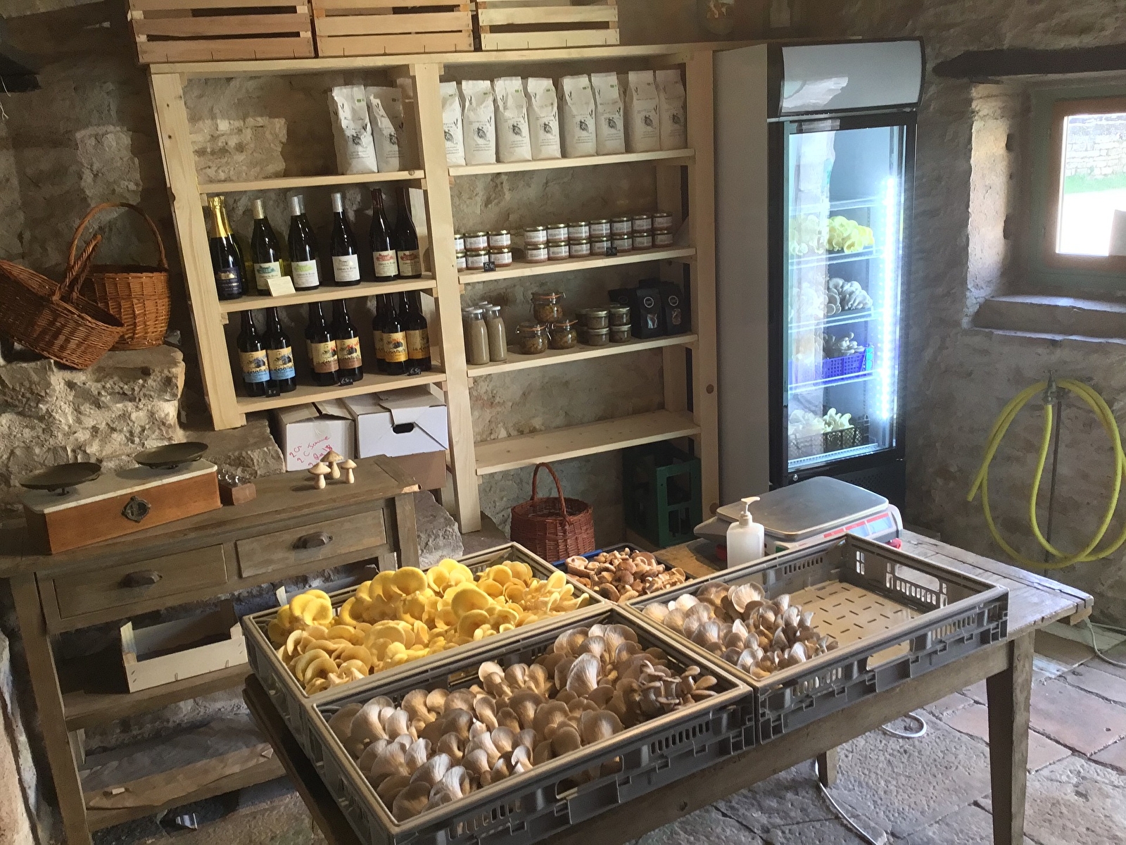 Culture et myciculture de shiitakes, pleurotes, pholiotes et de champignons médicinaux à la champignonnière, ainsi que de produits transformés.