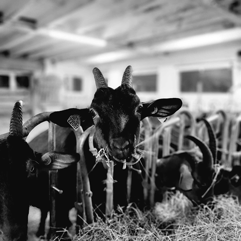 Les chèvres pâturent à la belle saison, et sont nourries en hiver au foin de prairies naturelles récolté sur l'exploitation. Cette nourriture leur permet de produire un lait de qualité. Vous pourrez retrouver ces doux arômes dans divers fromages, frais, affinés et de nombreux fromages aromatisés !