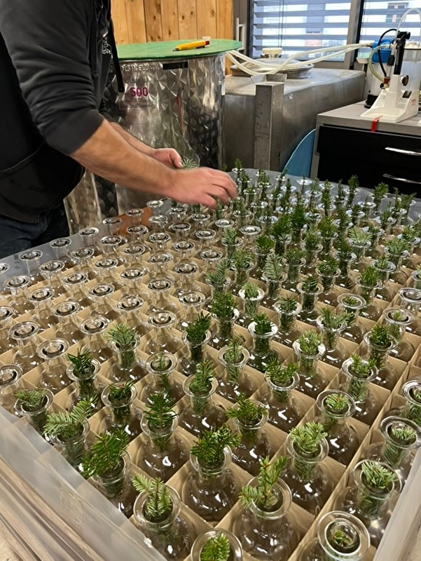 Nous récoltons les plantes de notre terroir, sur nos terres ou aux alentours, pour les bourgeons de sapin et les racines de gentiane. A partir de ces matières nobles, nous créons nos propres recettes pour élaborer des spiritueux de caractère au goût inimitable.