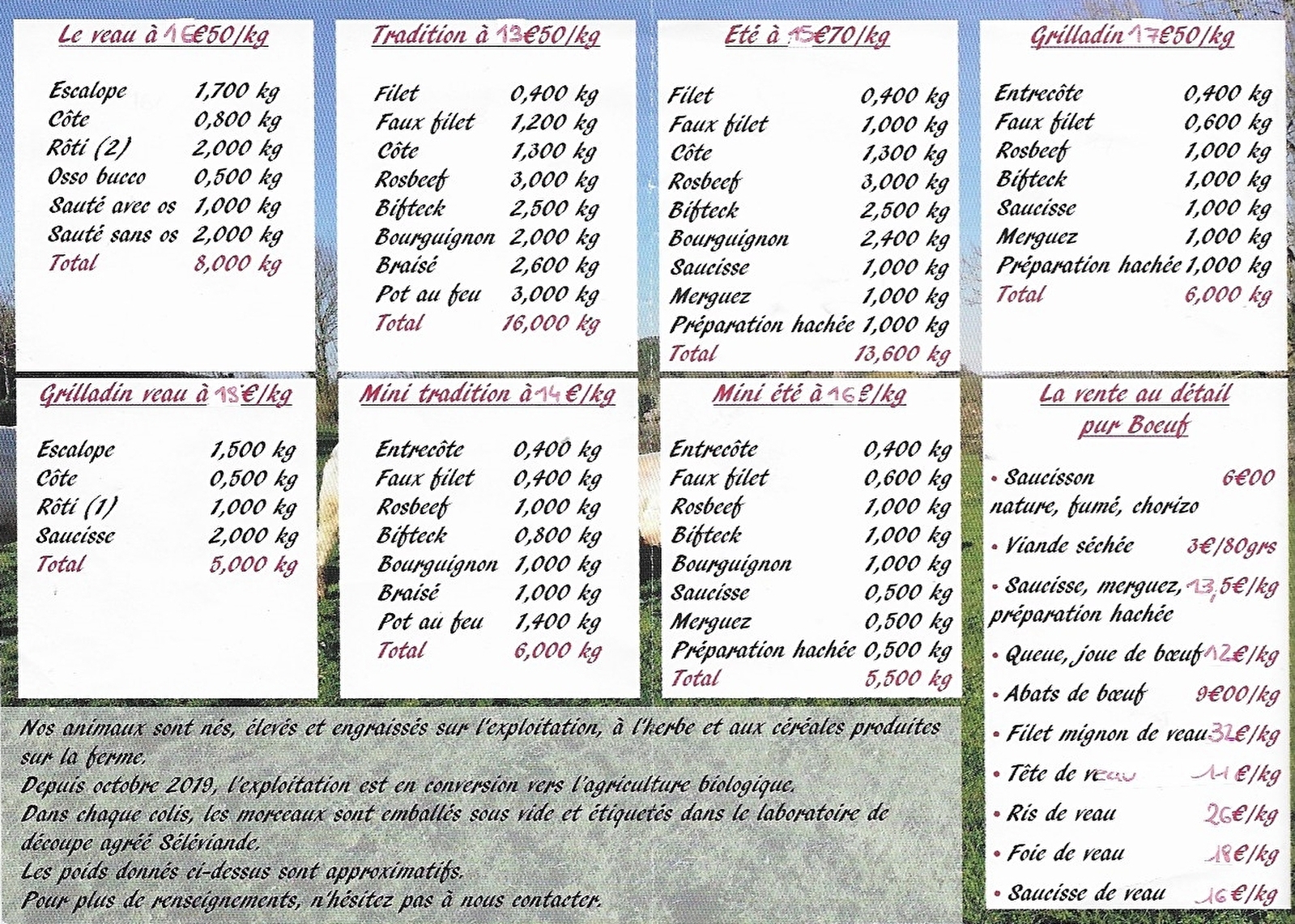 Vente à la ferme de viande de bœuf et de veau rosé en AB.