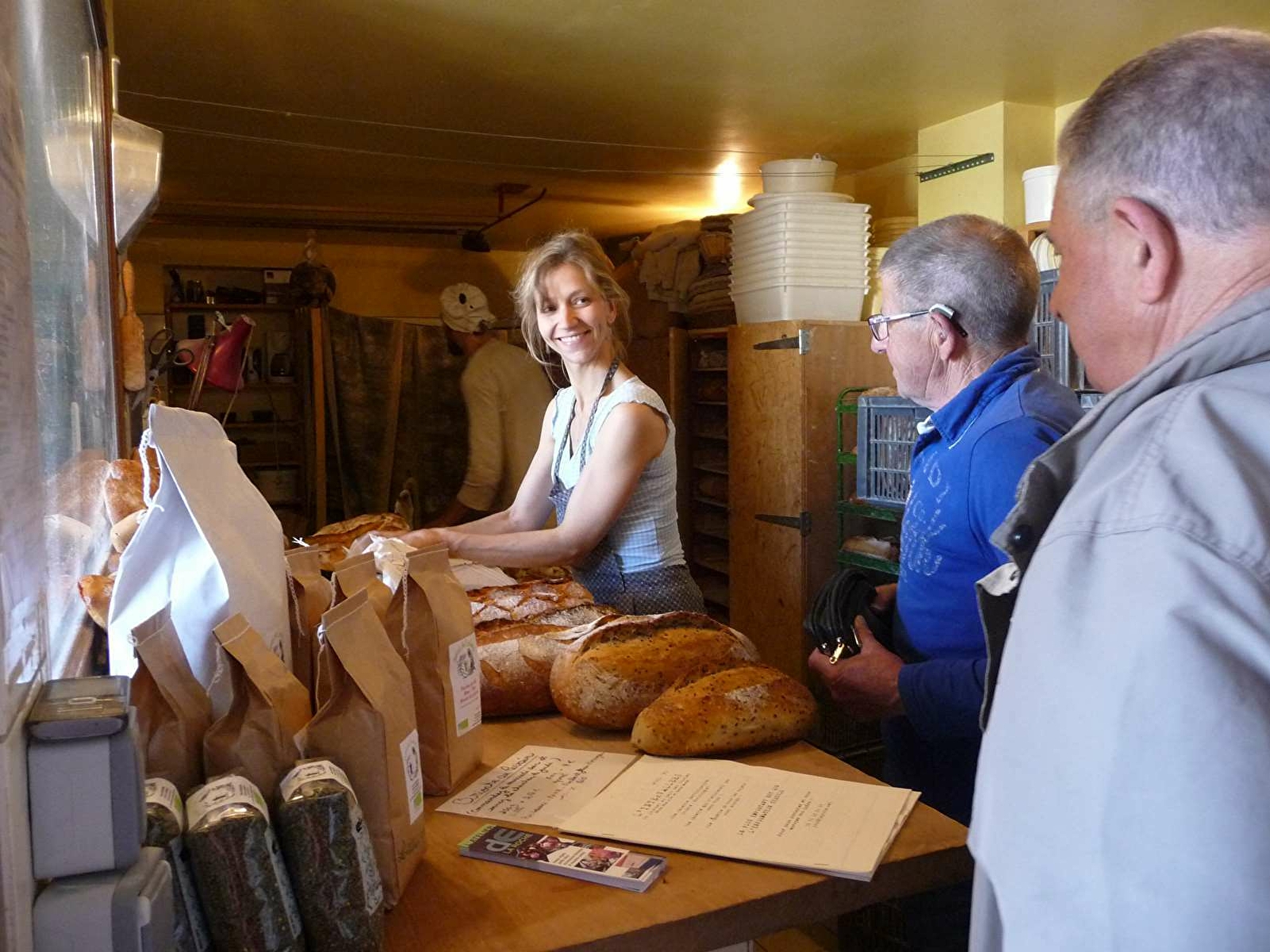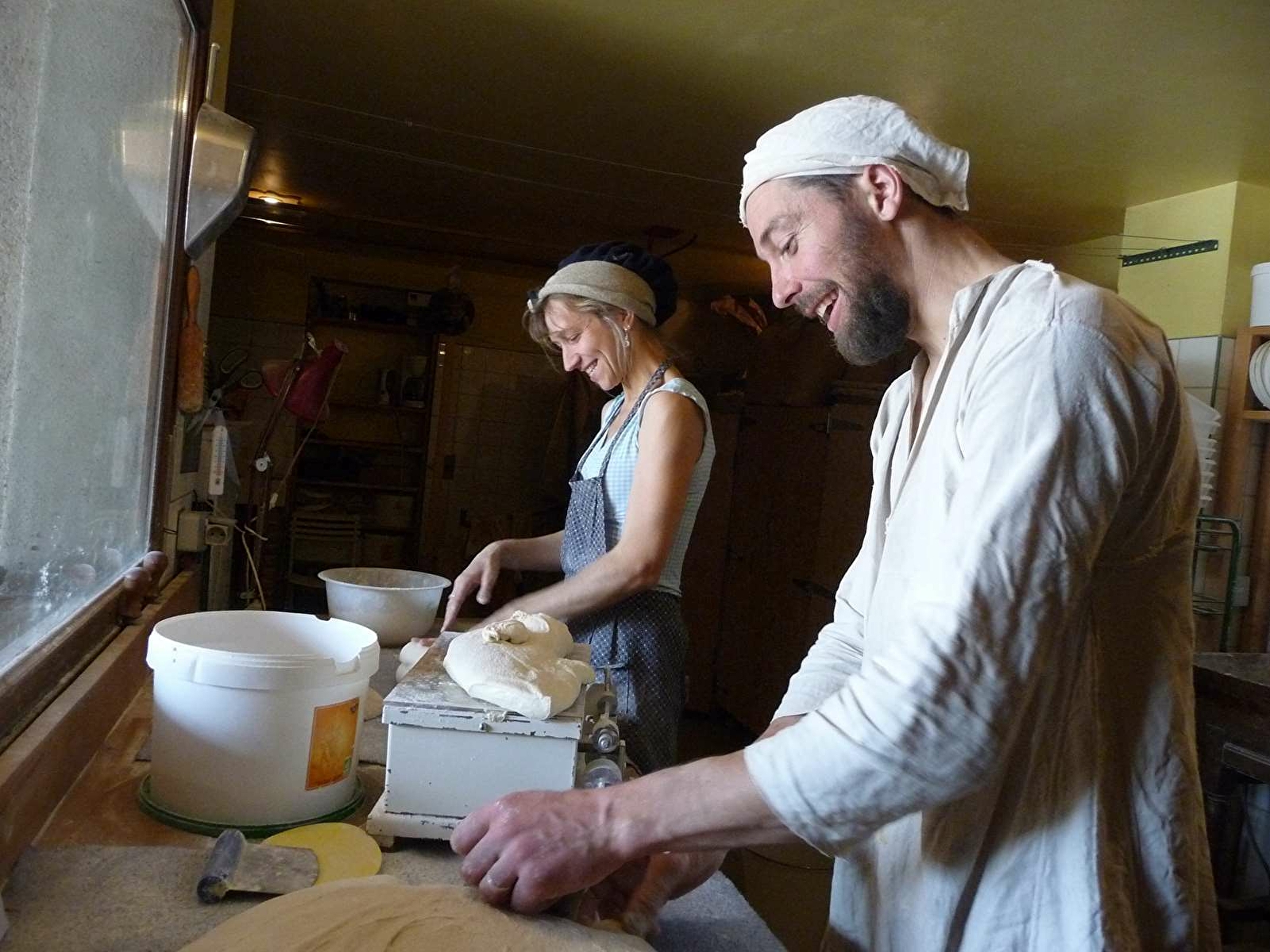 Notre pain est réalisé à partir de farine semi-complète T80. La farine est produite dans notre ferme et issue d'un mélange de 12 variétés de blés anciens. Notre pain au levain est garanti sans levure ou autre produit chimique. Le levain provient d'une fermentation naturelle et donne au pain une saveur toute particulière, ainsi qu'une très bonne digestibilité. En outre, le levain permet une meilleure conservation du pain.
