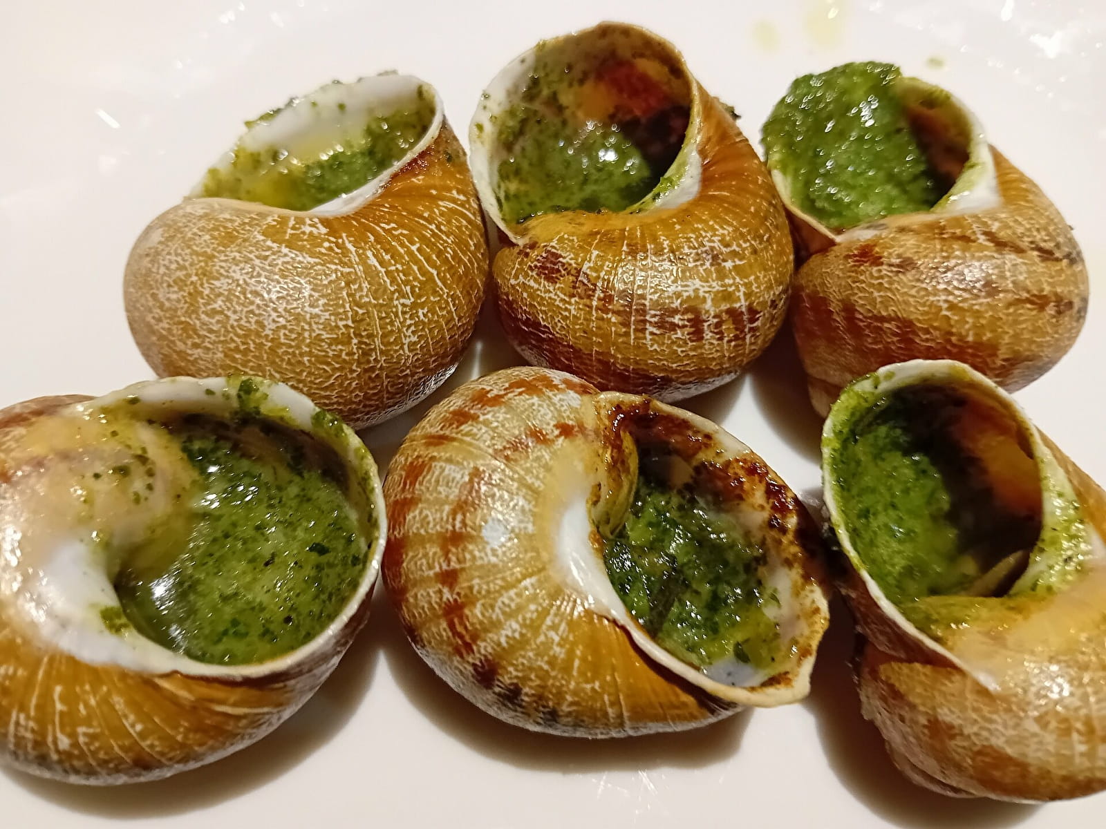 Escargots au court-bouillon, escargots cuits avec des légumes frais et locaux et du vin blanc