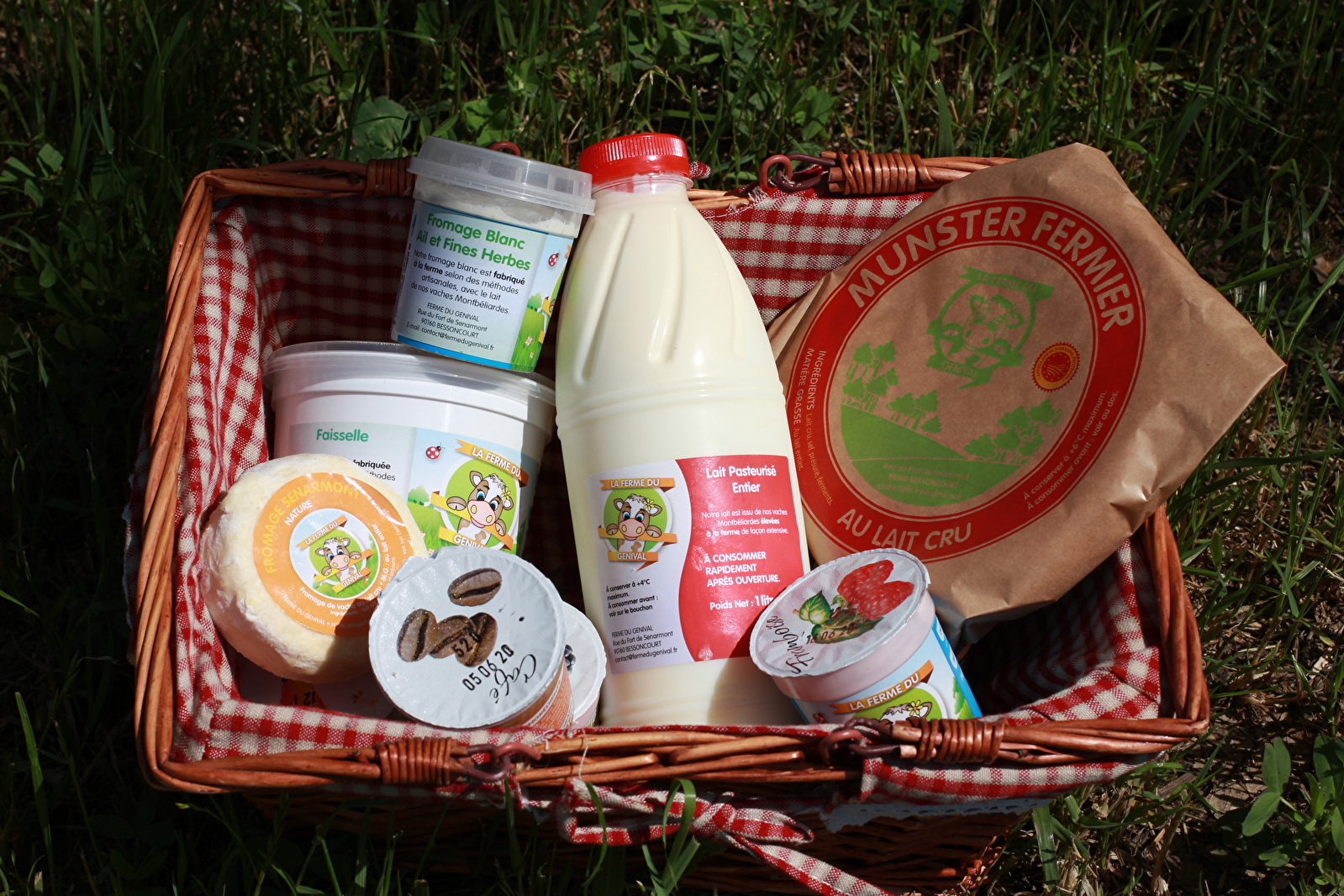 Productions : yaourts natures, aux fruits, crème dessert, crème crue épaisse, fromage de vache (Senarmont, Munster), fromage blanc nature ou ail et fines herbes, faisselle, lait cru.
