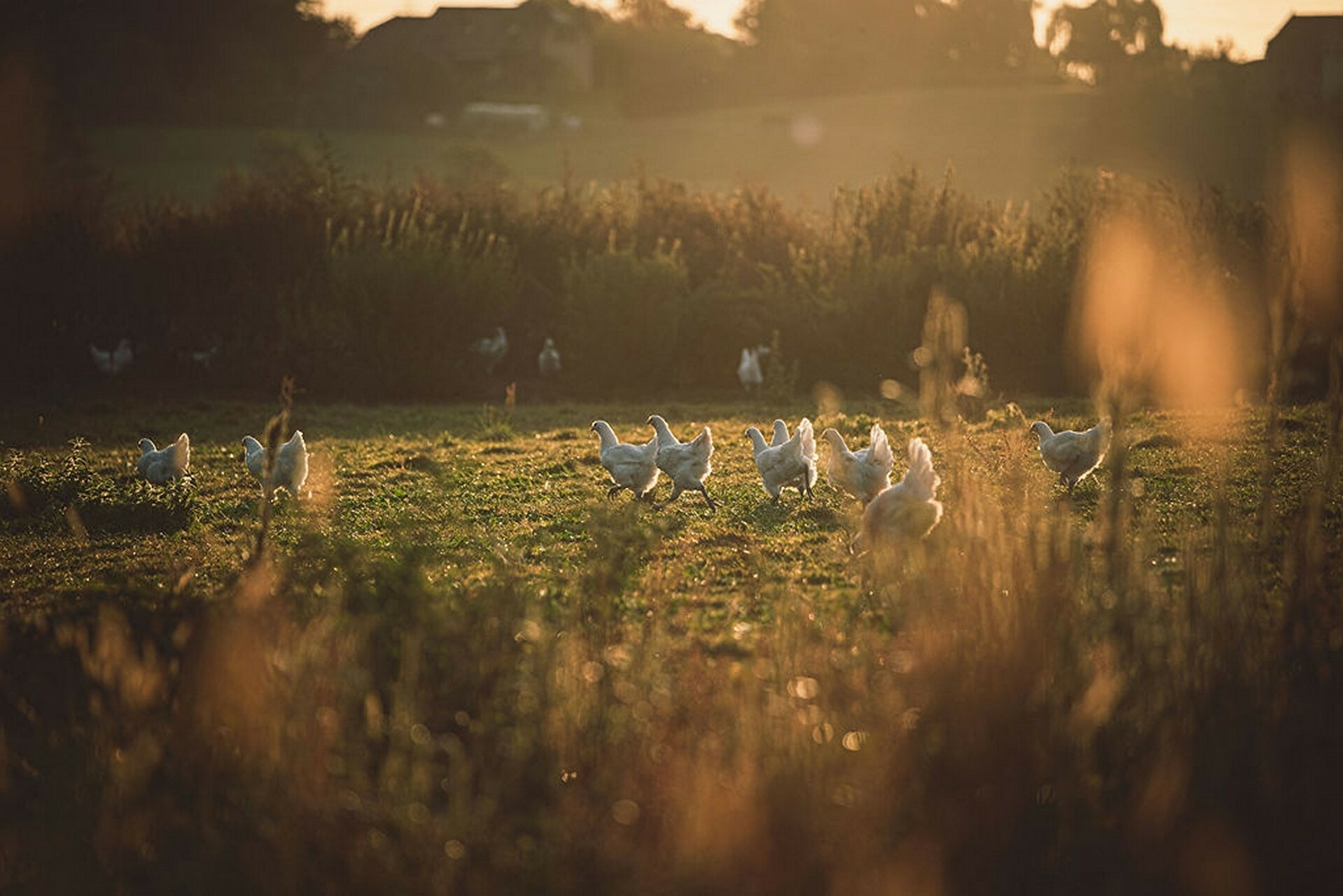 Vente à la ferme de volailles de Bresse, Pintades, Porc de Bayeux Plein Air, Porc élevé sur Paille sans OGM, Miel de Ferme et Bières belges.