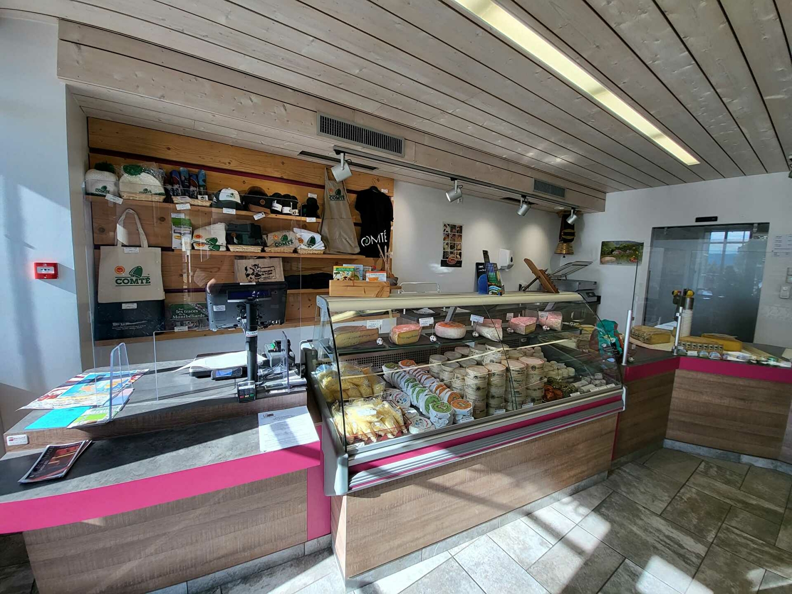 Vente de Comté (fabriqué et affiné sur place), Mont d'Or et produits régionaux (saucisses, vin, yaourts, beurre...).