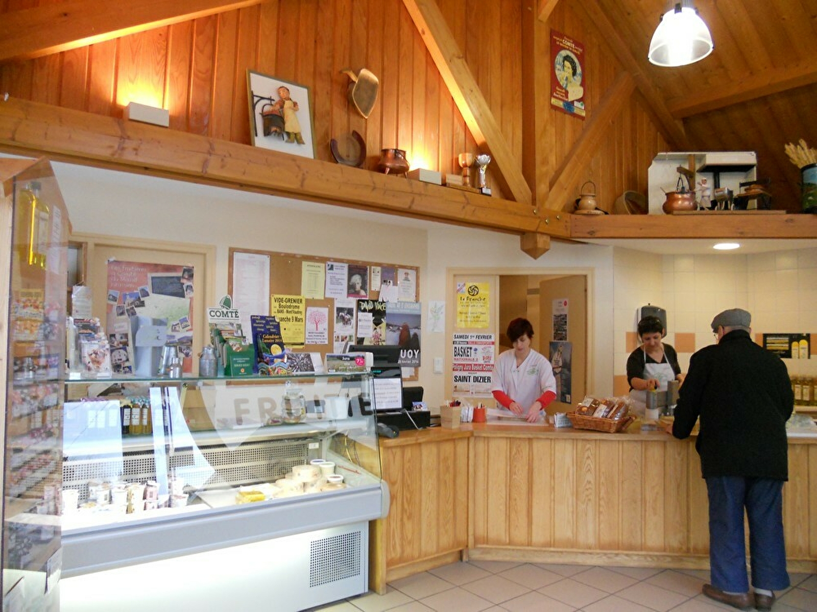 Le magasin, juste à côté de la fromagerie, est vaste et clair. Aurore, Christine et Audrey vous conseilleront pour déguster les 3 Comté et les 2 Morbier fabriqués ici-même, mais aussi les autres AOP comtoises, de la tomme, de la raclette et d'autres spécialités fromagères.