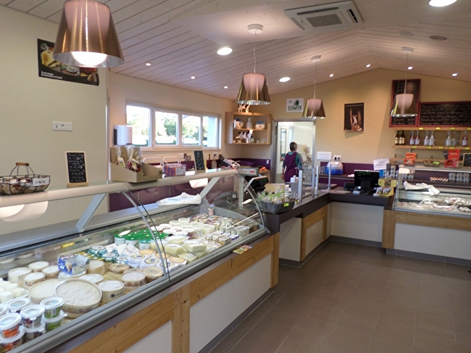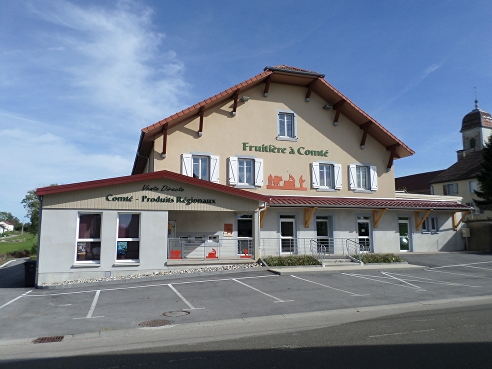 Coopérative typique située dans un village aux portes du Haut-Doubs, nous vous accueillons dans notre magasin de 50 m² pour découvrir notre production de Comté, beurre, crème et d’autres produits régionaux (vin, bière, miel…). Possibilité de voir la fabrication le matin (galerie vitrée).