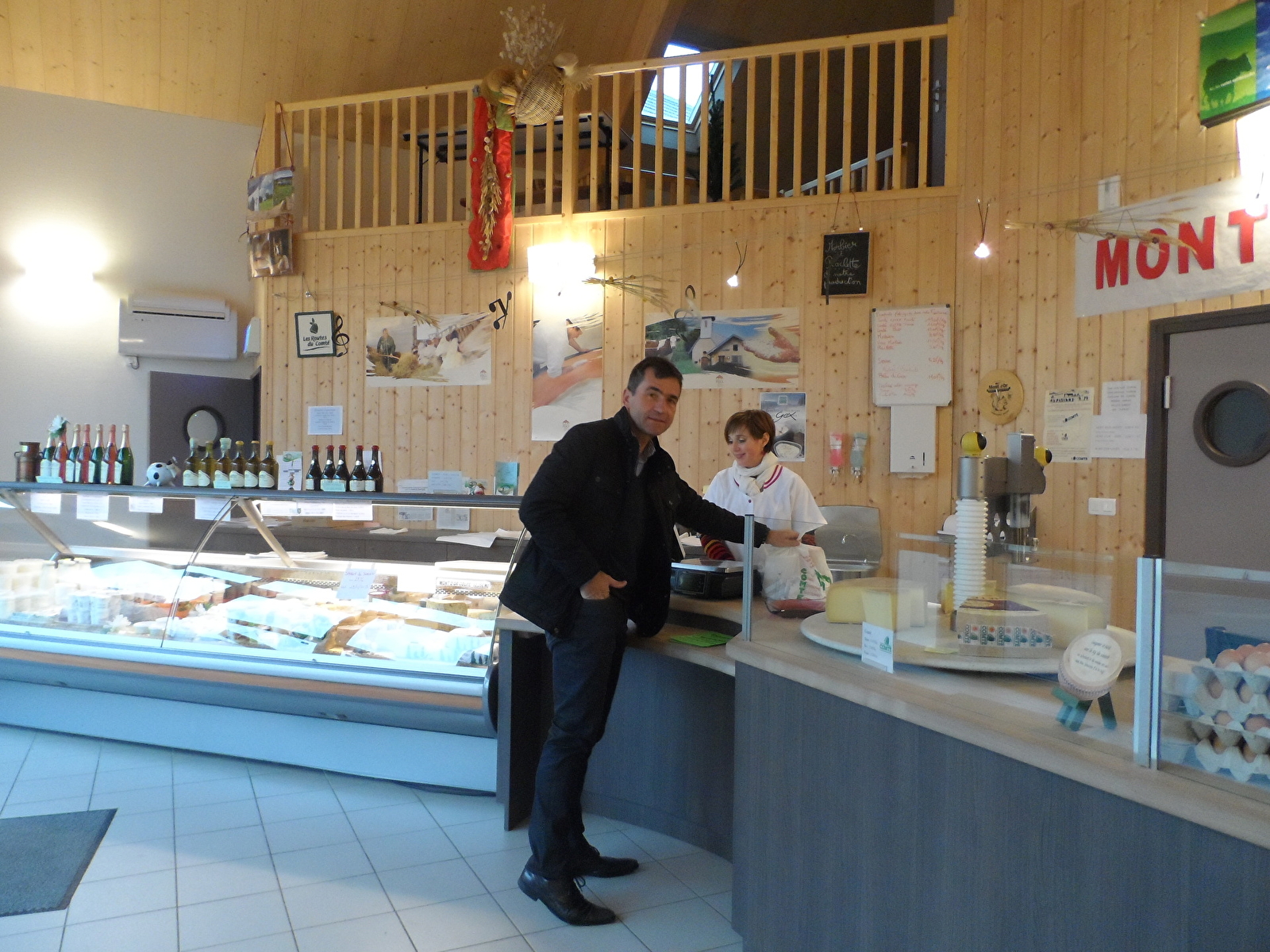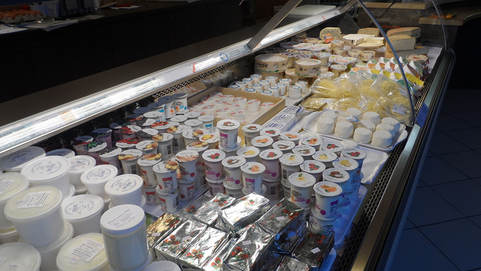 Le magasin tout habillé de bois est tenu par trois vendeuses en alternance. Vous y trouverez les produits de la coopérative (Comté, Morbier, beurre, crème, sérac, lait cru) et des produits locaux et régionaux (Bleu de Gex, fromages de chèvre, Mont d'or, cancoillotte et metton, yaourts, miel, vin d'Offlanges et Côtes du Jura, jus de pommes...