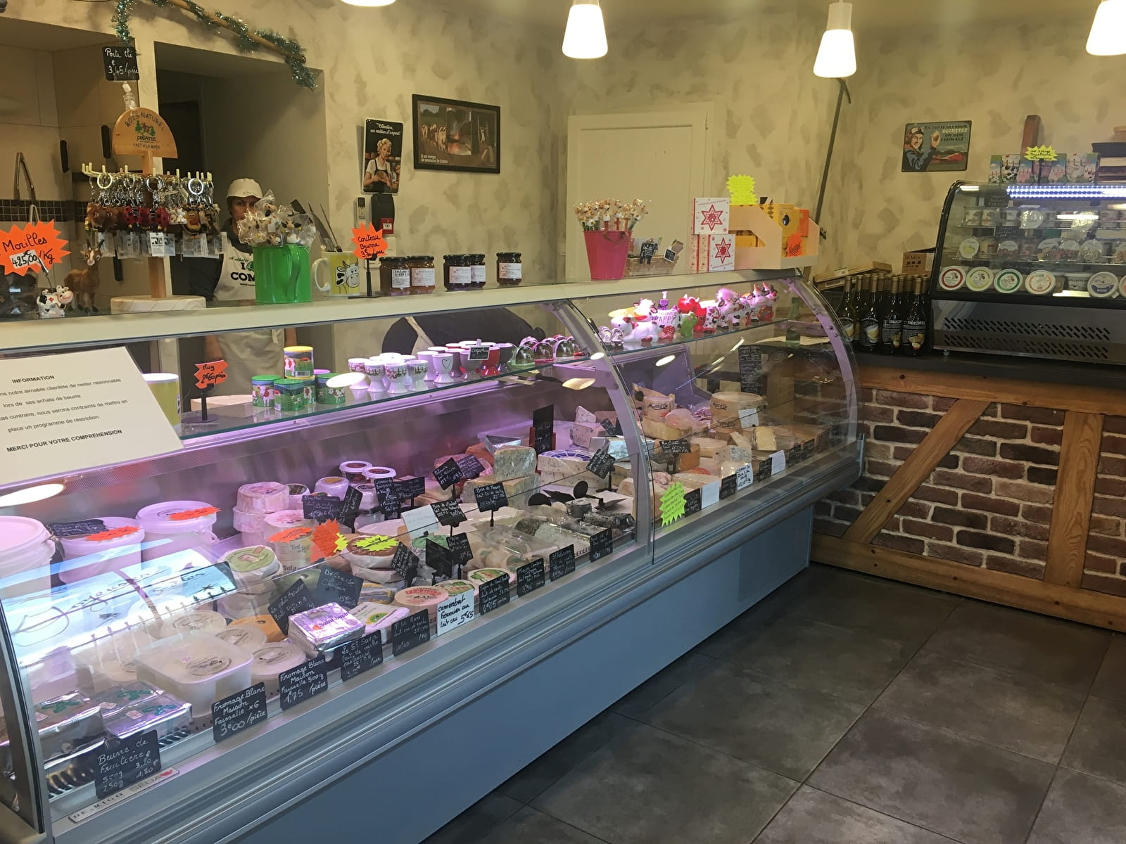 Dans notre magasin, vous trouverez aussi d’autres fromages et d’autres produits du terroir : morbier, raclette, tomme, chèvre, bleu, yaourt, miel, confiture, sirop, terrine, charcuterie et vin. Dépôt de pain.