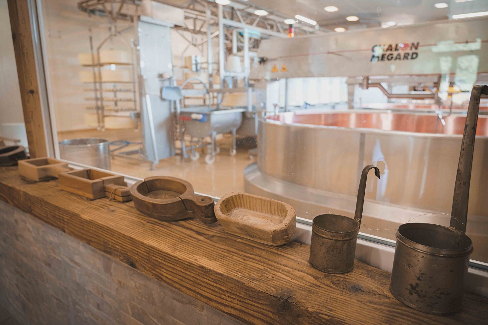 De larges baies vitrées vous permettront de voir le travail du fromager ainsi qu'une partie des caves de pré-affinage.