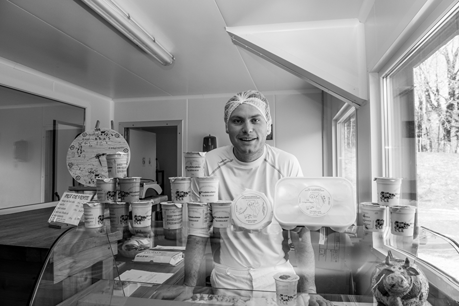En fin de journée, le GAEC accueille les visiteurs avec chaleur et simplicité : ceux-ci découvrent ainsi la vie à la ferme, la traite et les soins aux jeunes animaux et achèvent leur visite en passant par le magasin de l’exploitation où ils peuvent « faire le plein » de succulents produits du terroir jurassien.