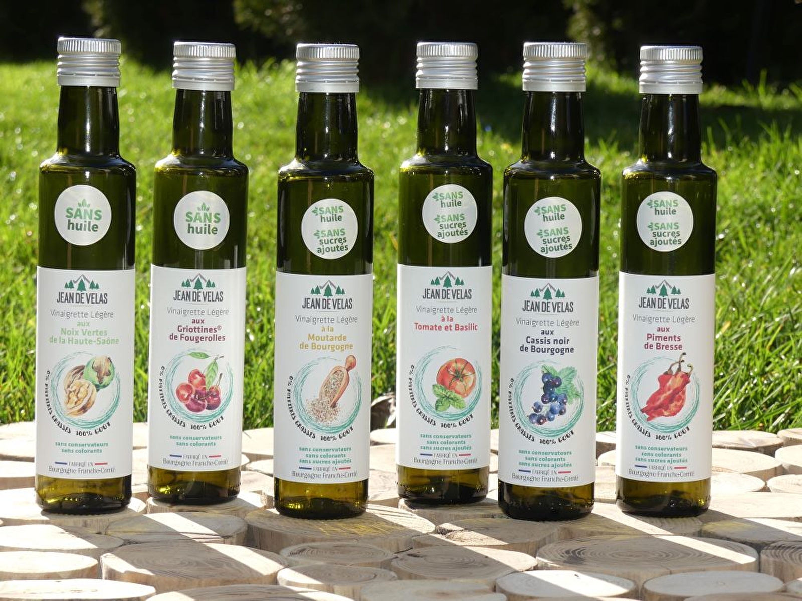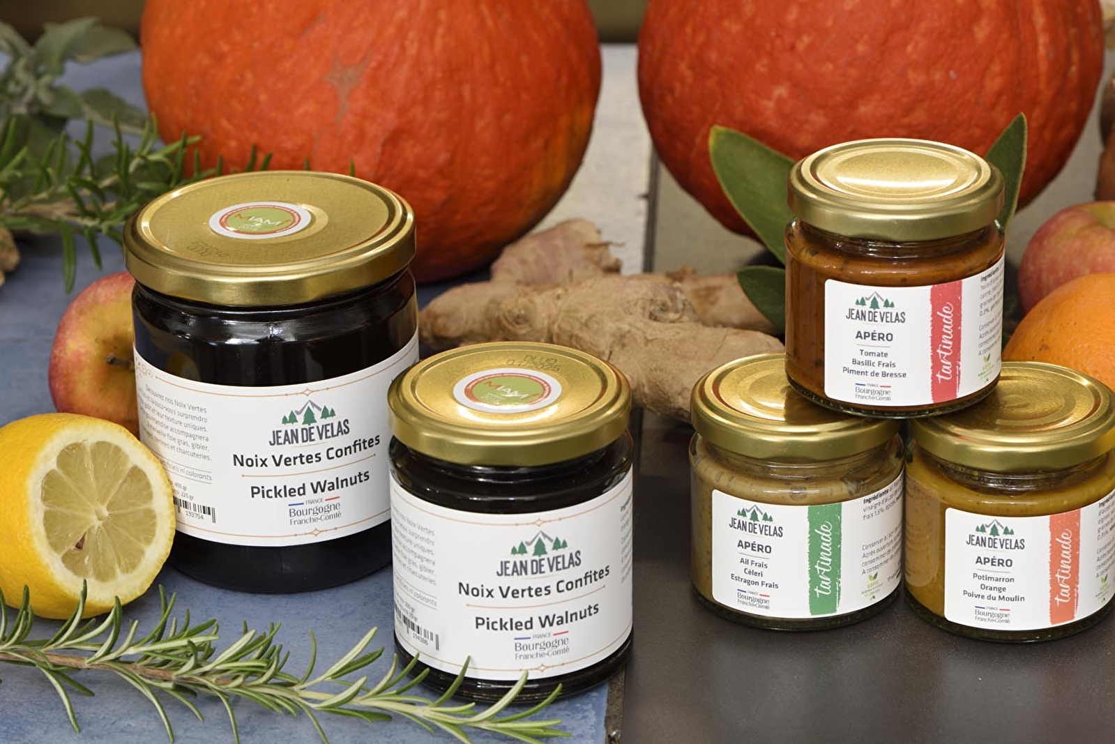 Nous proposons, sous la marque Jean de Velas, une large gamme de vinaigres , de tartinades, de vinaigrettes artisanaux ainsi que des Noix Vertes Confites/ Pickled Walnuts - un condiment unique sur le marché français. Tous les produits sont fabriqués à 100% dans notre atelier à Vitrey sur Mance selon des recettes originales, sans colorant artificiel ni conservateur. Les ingrédients utilisés proviennent en majorité de Bourgogne Franche Comté, de producteurs et maraîchers locaux.