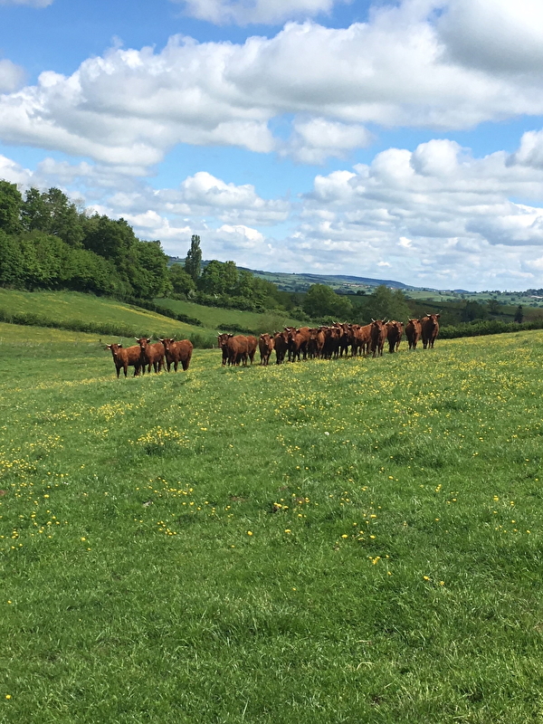 Élevage de bovins de race Salers en agriculture biologique, alimentés au foin bio et à l’herbe, en pâture toute l’année (sans pesticides, sans engrais, sans antibiotiques) Vente directe, à réserver.