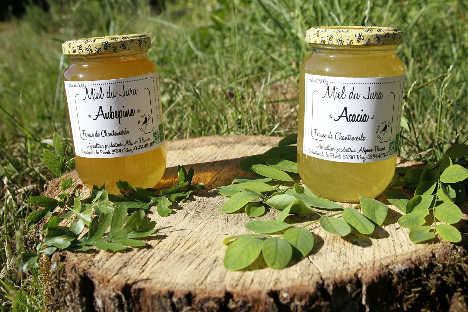 Les 250 ruches sont installées sur des espaces variés en petite montagne et un peu plus loin dans le Haut-Jura : vergers, prairies maigres, pâturages gras, taillis, haies, bois et forêts. Une diversité de miels vous est ainsi proposée : aubépine, tilleuls, montagne...