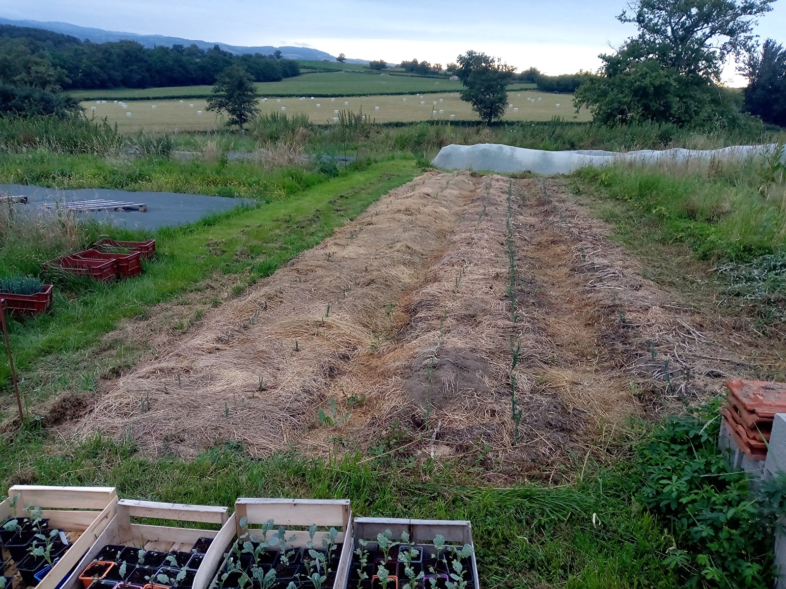 Petite ferme installée au milieu des prairies pâturées du Brionnais, je produis plants, légumes et miel.