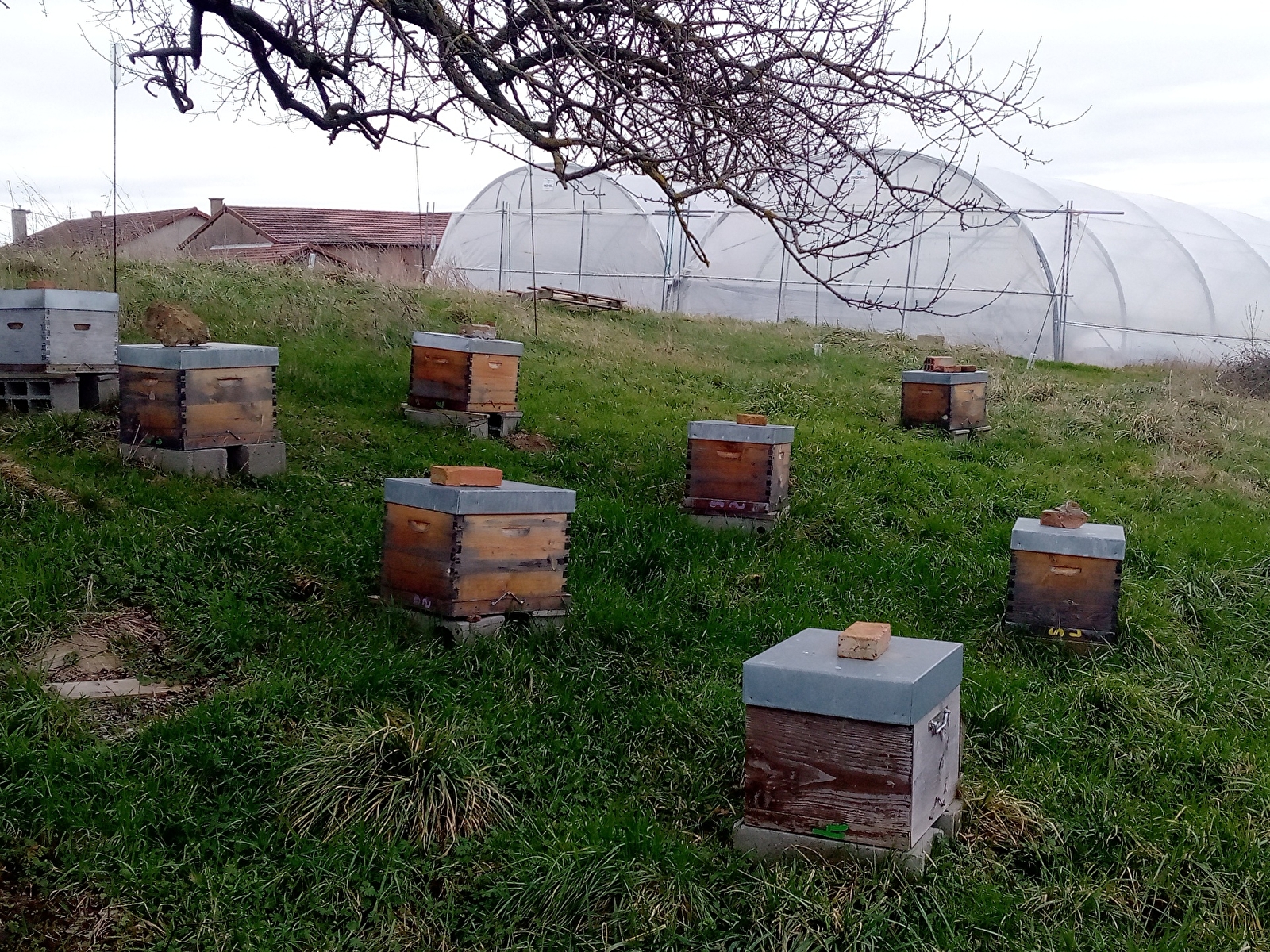Mon rucher principal se situe sur mes terres au milieu des cultures.