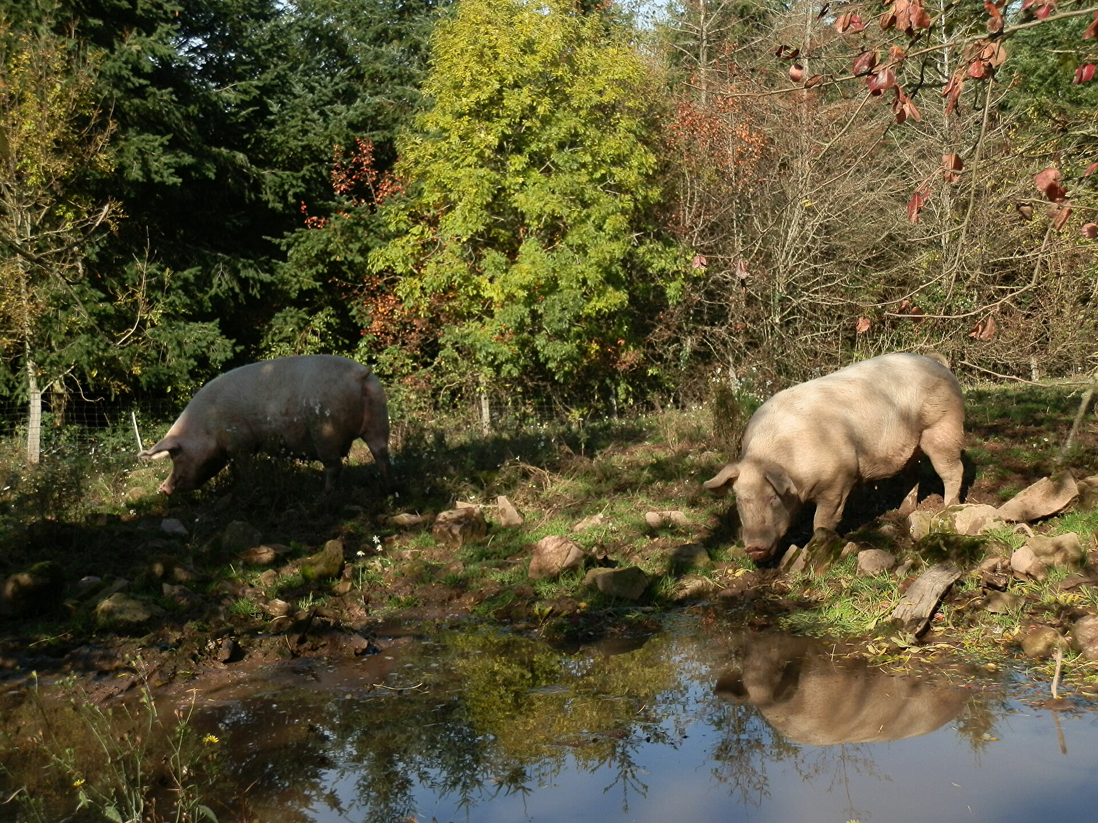 Porcs nés et élevés en plein air sur l'exploitation. Découpe et transformation à la ferme, toutes charcuteries, viande fraîche au détail, demi-gros ou gros. Possibilité de visiter l'élevage.