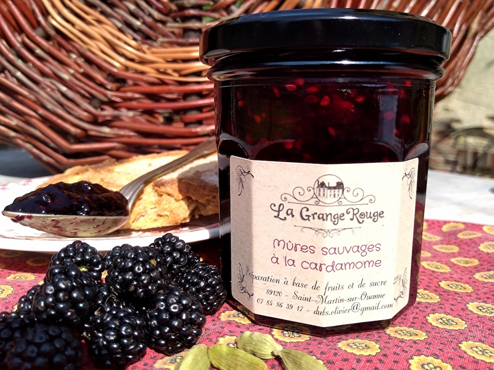 La Grange Rouge est le domaine familial depuis 1829. Mes confitures y sont préparées avec les fruits ou légumes cultivés sur place, sans traitements ni engrais chimiques. Je récolte aussi mes fruits non traités dans des vergers privés, ou les baies sauvages des environs. Mes recettes originales sont au service du produit naturel, elles subliment parfois les saveurs par des touches subtiles d’épices, de plantes aromatiques ou par des associations délicates de fruits.