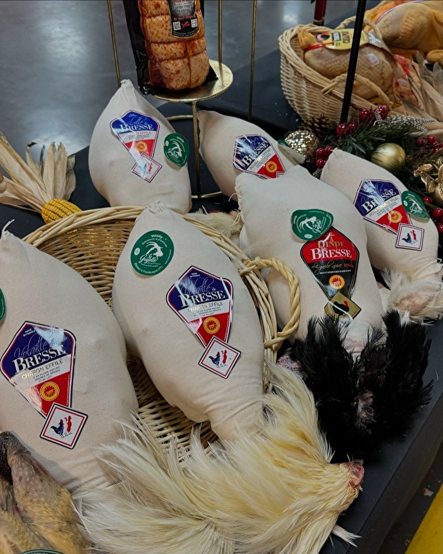 Vente à la ferme de volailles de Bresse (Poulets, poulardes toute l'année, mais aussi chapons de Bresse et Dinde de Bresse à Noël) et de fromages de chèvres.