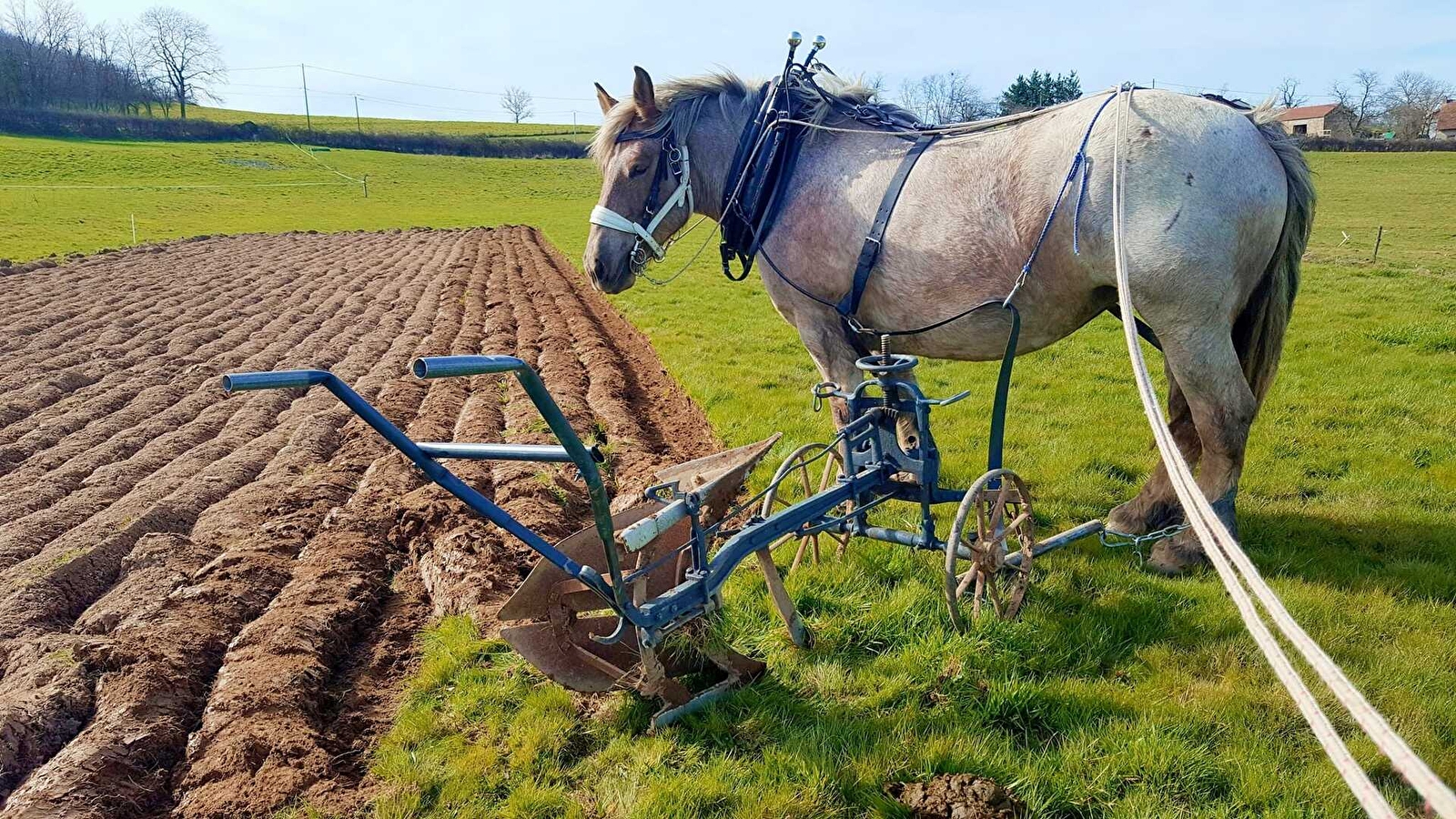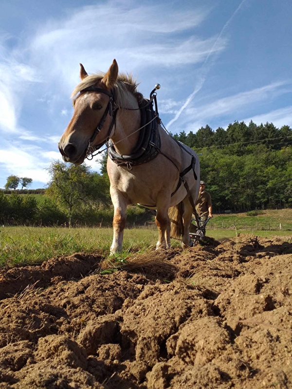 Nous avons créé celle-ci pour nous rapprocher de notre besoin d'autonomie. Nous souhaitons promouvoir l'agroécologie, une agriculture pérenne qui n'est pas contre la nature mais qui fonctionne avec elle. C'est pour cela que nous voulons travailler avec les chevaux en réduisant le travail du sol et sur couvert végétal. Nous avons choisi la traction animale et le travail manuel pour nous affranchir au maximum des énergies fossiles. Nous essayons de préserver la biodiversité au maximum en leur créant des habitats (marre, arbres, nichoirs.....). En maintenant une diversité d'espèces sur le site (oiseaux, amphibiens....) nous espérons réduire la pression des insectes ravageurs et autres sur les cultures.