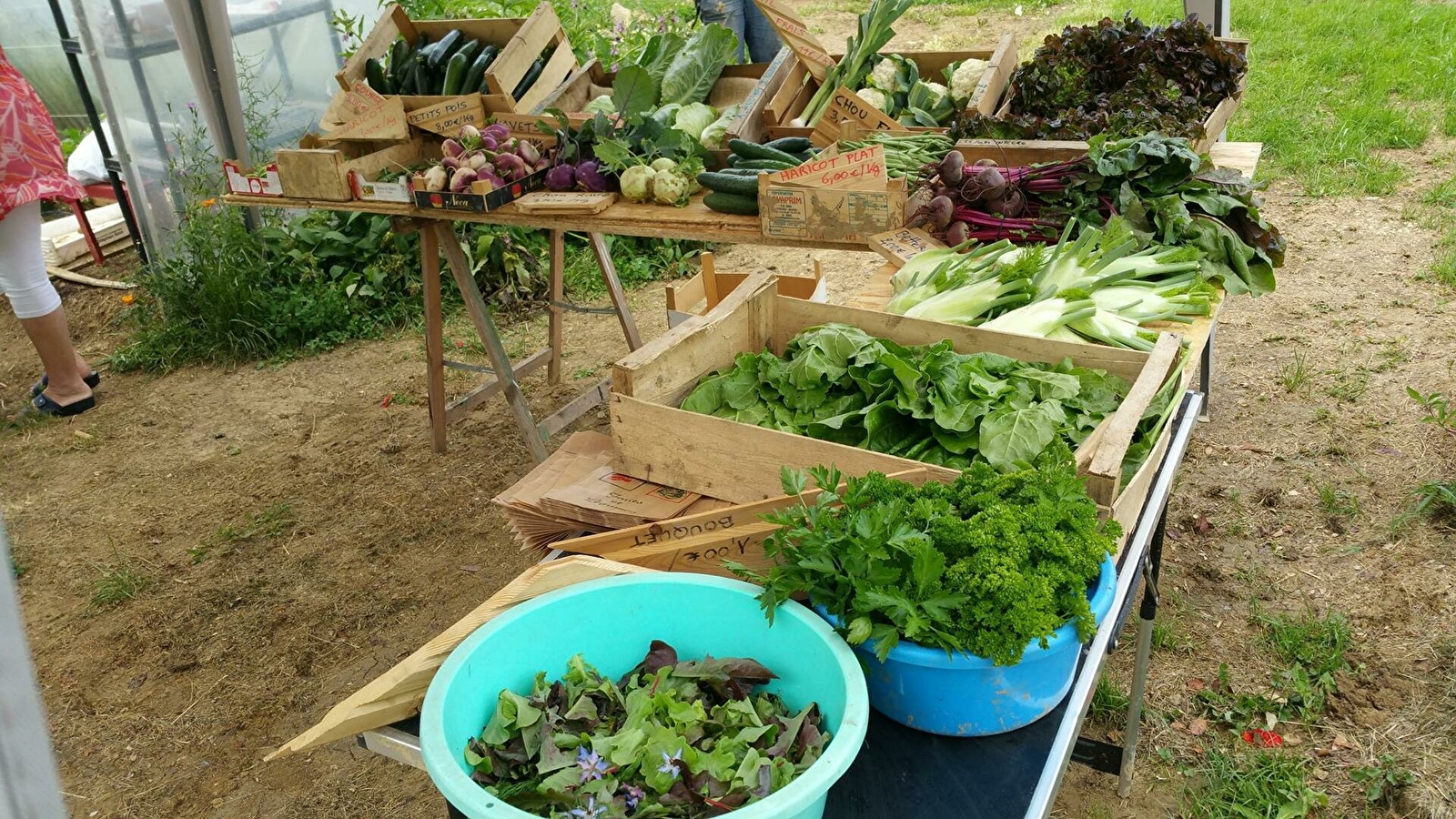 Produits : Légumes (aubergine, betterave, chou-fleur, chou-rave, carotte, concombre, courgette, échalotte, haricot, oignon, pois, poireau, tomates...) et plantes aromatiques