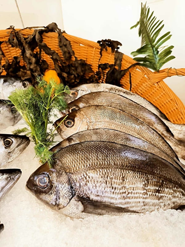 Nous proposons des poissons entiers et filets de saison, des produits traiteurs (terrines, saumon fumé, salades de la mer, ...), des coquillages (huîtres, moules, St Jacques ...) et des crustacés de tous types (crevettes roses Label rouges Madagascar, gambas crues, crevettes grises, ...).