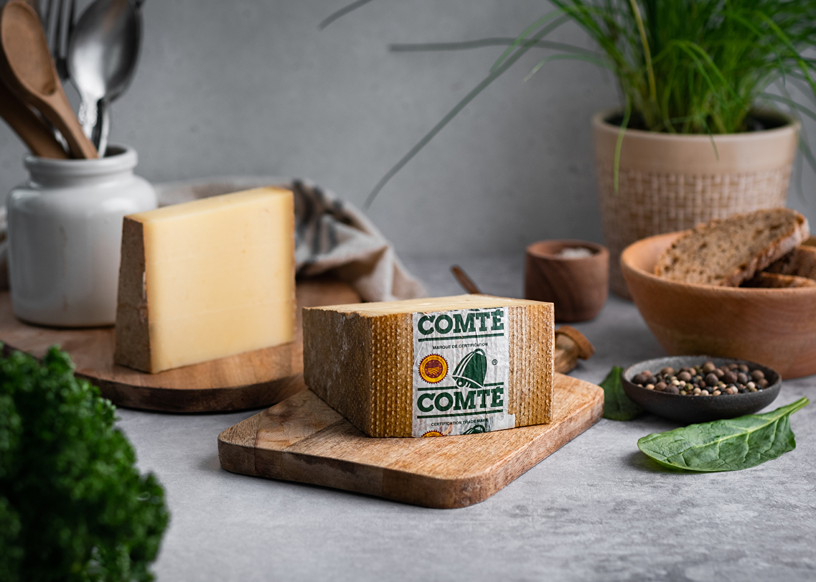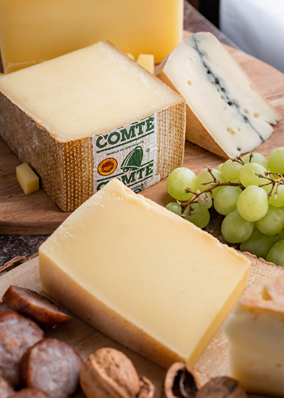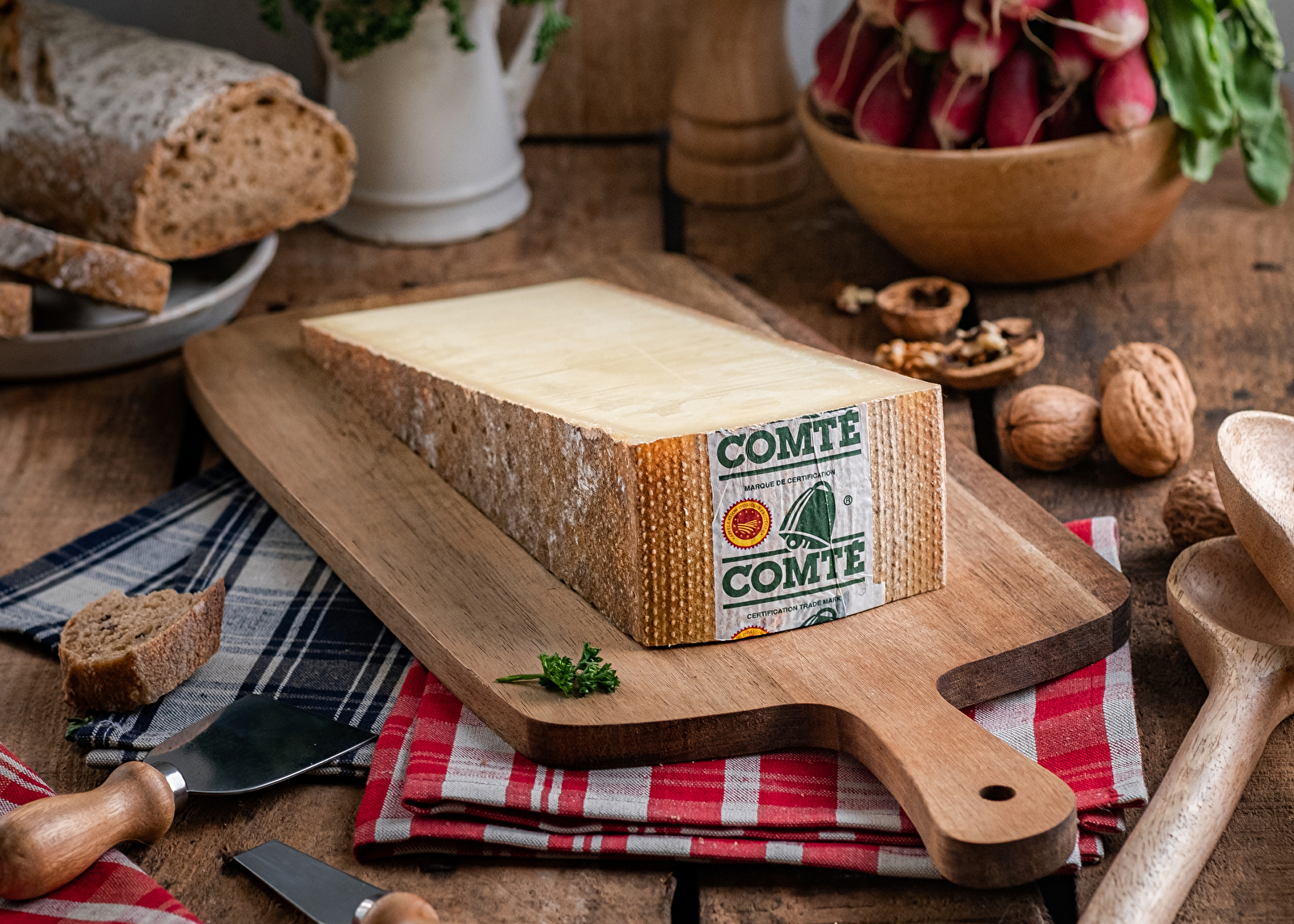 Le Comté est un fromage au lait cru à pâte pressée cuite. Son terroir est le Massif du Jura, une région de moyenne montagne qui s’étend sur le Jura, le Doubs (deux départements de la région Bourgogne-Franche-Comté) et l’Ain (département de la région Auvergne-Rhône-Alpes).