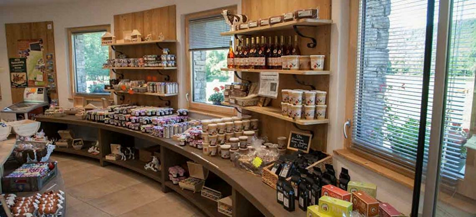 Une grande sélection de charcuteries, vins et apéritifs locaux garnit aussi les rayons. Enfin, vous trouverez tout un éventail de gourmandises et autres savoureux souvenirs gustatifs (mais pas uniquement) de notre région.