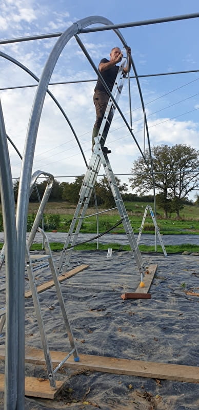 La surface de notre exploitation est de 1,3 ha. Elle comprendra à terme 1600 m² de cultures sous abris, 3000 m² de jardins en plein champ et 4000 m² de verger.