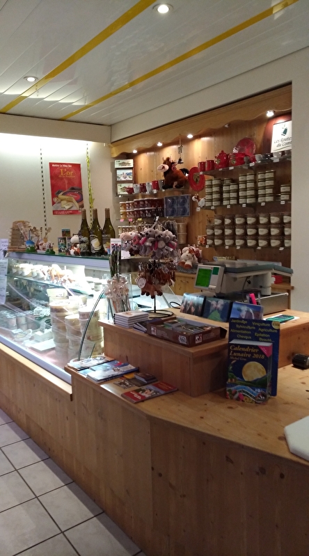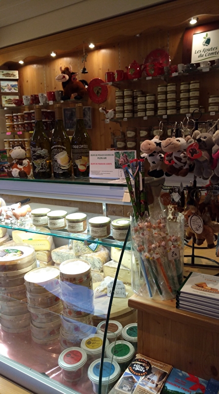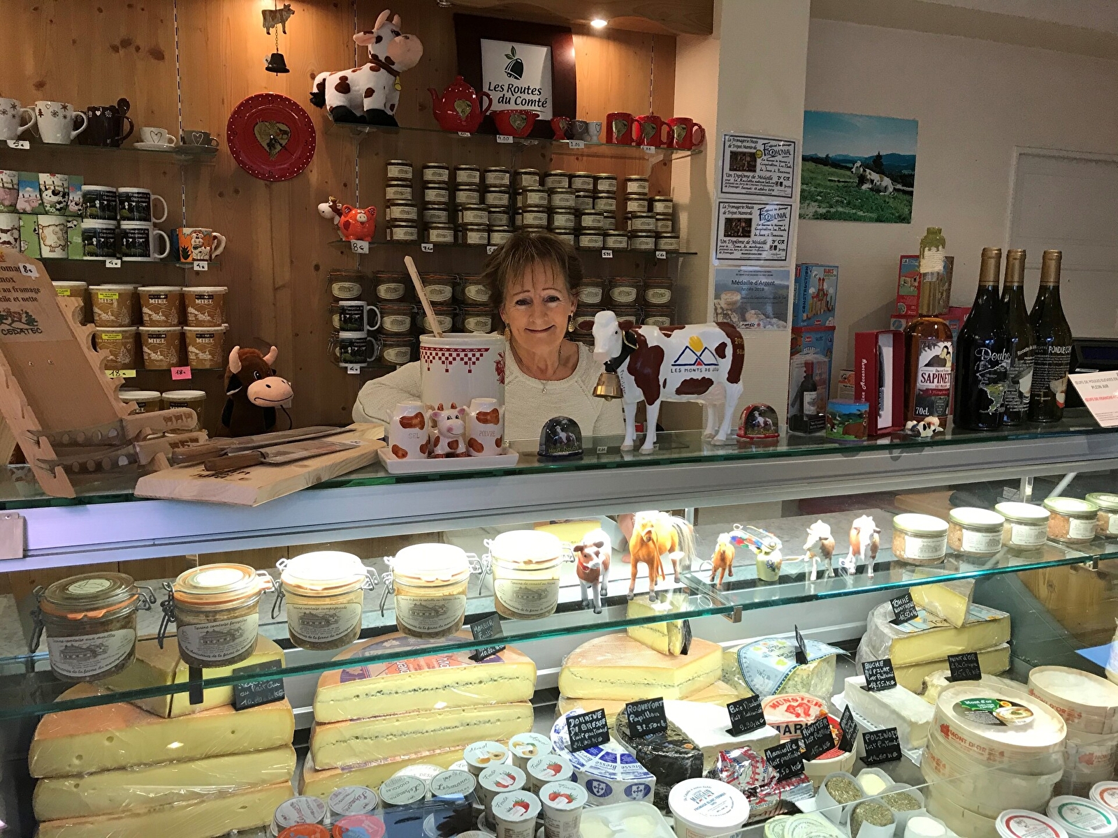 Magasin de vente de Comté, Morbier, crème, beurre ainsi que divers produits régionaux : charcuteries, vins, miel.