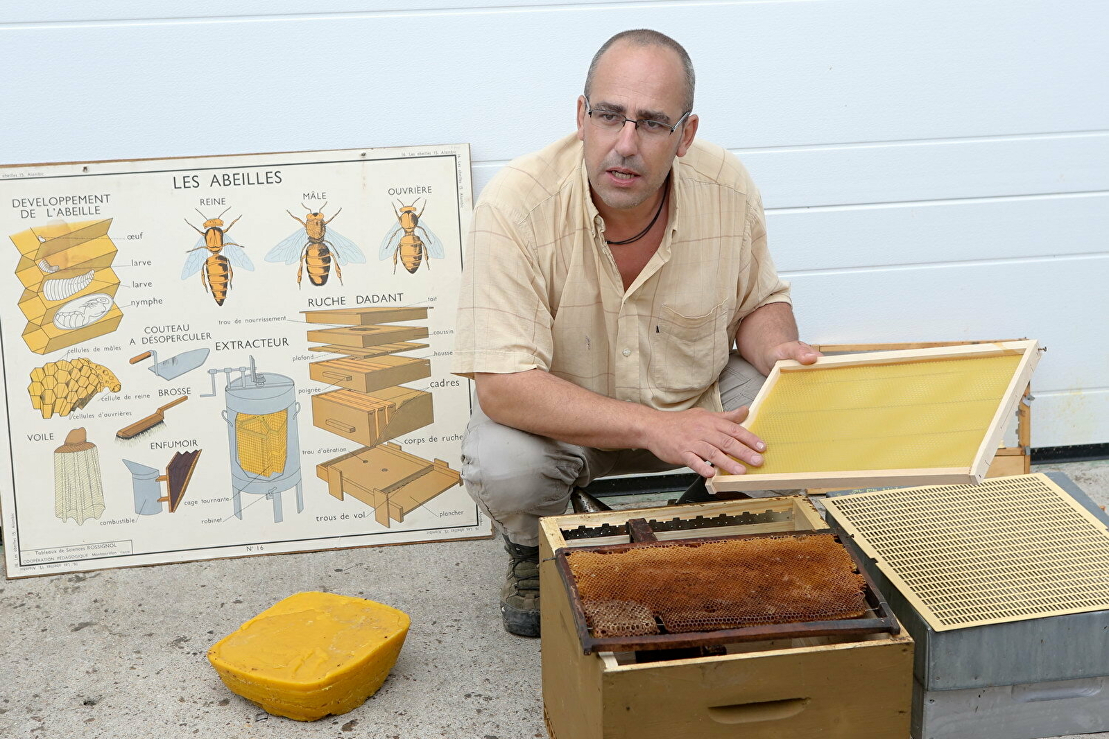 Quand je peux en début de saison, j'organise des visites de la miellerie sur demande et me déplace dans les écoles pour sensibiliser les enfants à l'importance des abeilles pour garder la biodiversité.