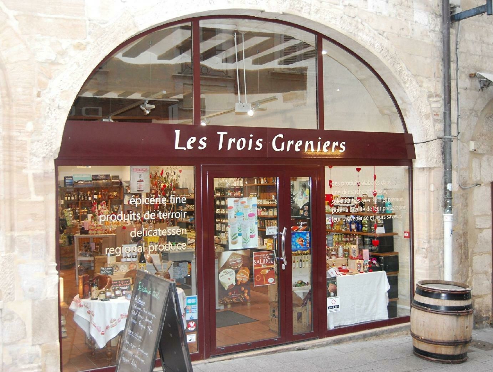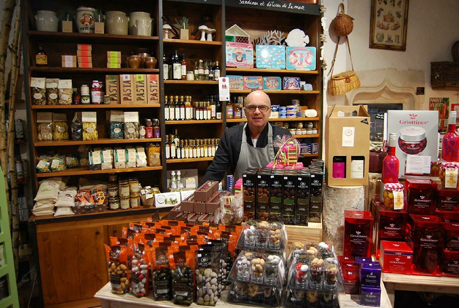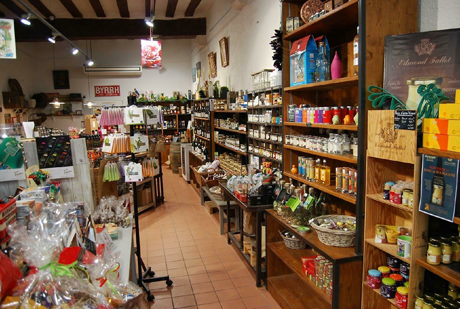 Dépositaire moutarde Fallot, chocolats Bonnat, confitures l'Epicurien, pain d'épices Toussaint, Huilerie Beaujolaise, foie gras Georges Bruck, saumon fumé le Borvo, Griottines, Cassissines...