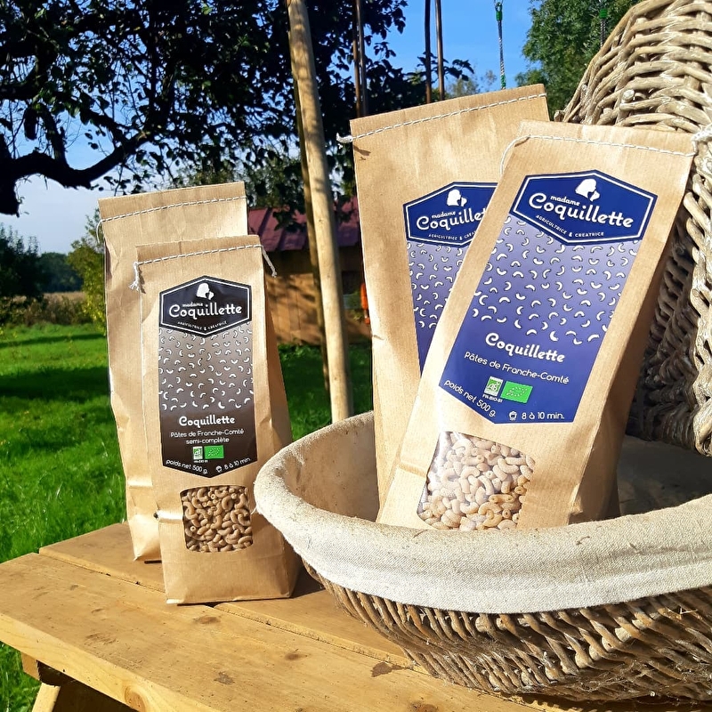 Installée officiellement comme agricultrice depuis le 1er avril 2021, l'activité de Madame Coquillette est la culture de céréales, principalement blé dur, blé tendre, lentilles, avec également la création d’un laboratoire de transformation à Cult, pour fabriquer de la farine, des pâtes et par la suite des biscuits avec ses propres céréales. Des produits 100% locaux et bio. Tous ses produits sont en vente à la ferme mais aussi dans les magasins de la région (So Bio, Doubs Direct à Besançon, Le Petit Marché à Lantenne-Vertière, la Boucherie Charmoille à Recologne...).