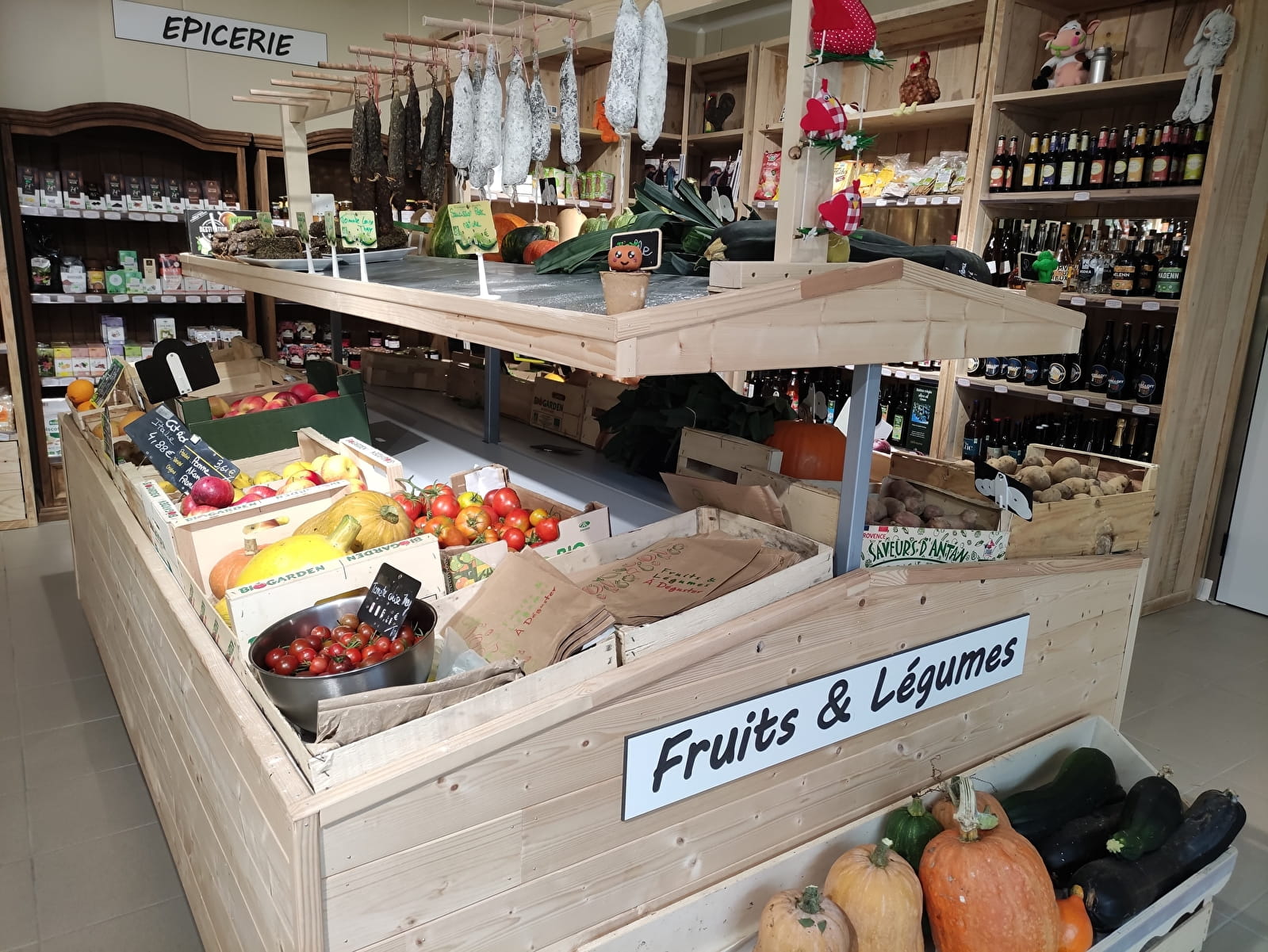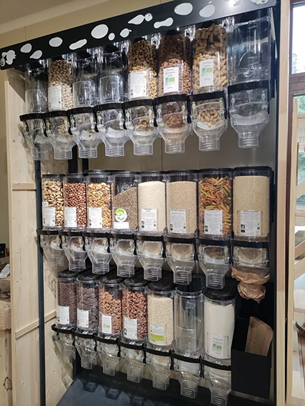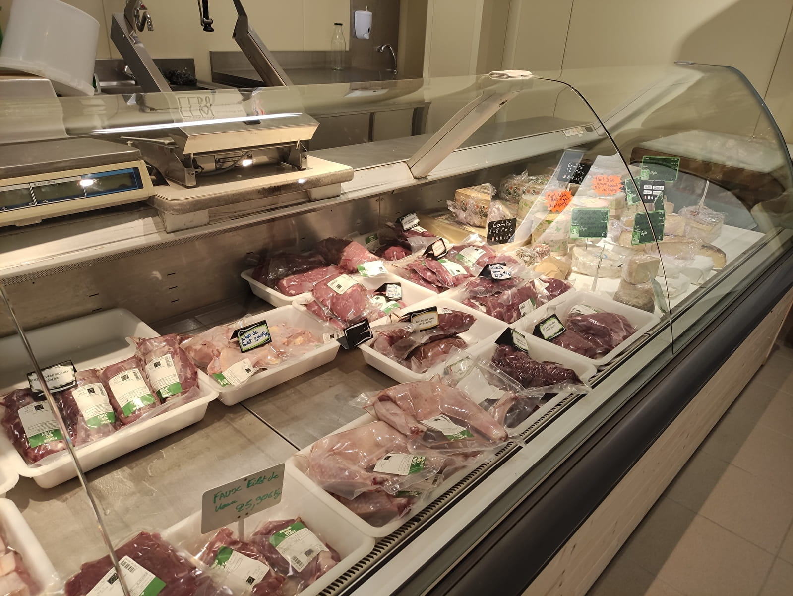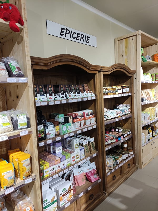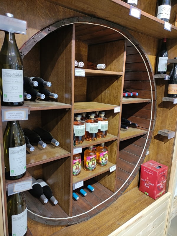 Magasin rénové été 2023 - Magasin de vente directe à la ferme. Nous produisons de la viande de porc, veau, boeuf, poulets, une gamme de charcuterie. Mais aussi de la farine, des oeufs, des pommes de terre, du lait cru entier, le tout issus de l'Agriculture Biologique. Nouveautés : épicerie, vrac, spiritueux, fruits et légumes