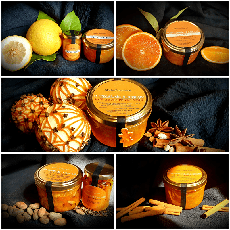 Marmelades variées d'oranges bio de Sicile, caramels variés au beurre salé, biscuits, crème de caramel beurre salé, crème de citron, pâte de fruits haute gamme et guimauves.. Je suis présente sur divers marchés, vous les retrouverez sur mon site internet ou sur ma page Facebook.