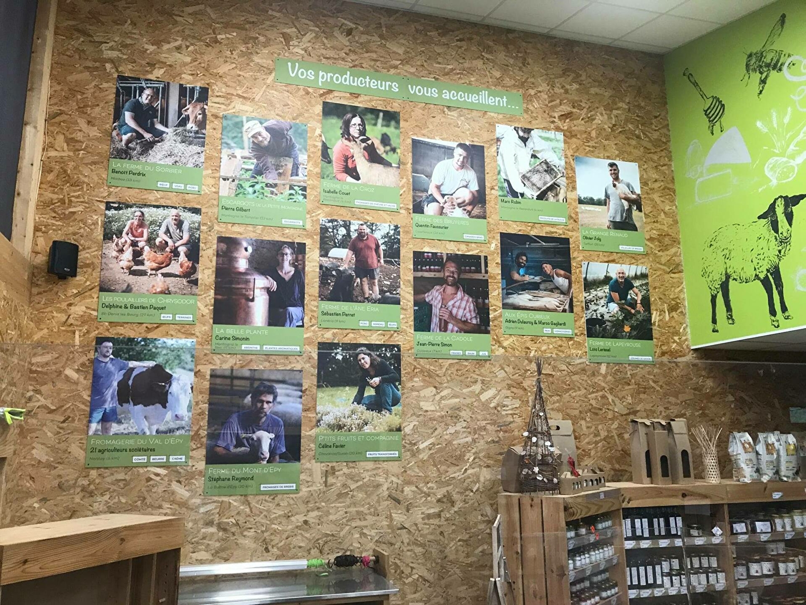 O pré de chez vous est un groupement de producteurs locaux qui proposent des produits qui prône le respect et la transparence : fruits et légumes, viande (agneau, porc, bœuf, veau, volaille, escargots), fromages (Comté, chèvre, brebis, vache), boissons (vins, bière, jus de fruits, sirops, tisanes, apéritifs et absinthes), pains, brioches et viennoiseries, miel, œufs, plantes aromatiques, etc.