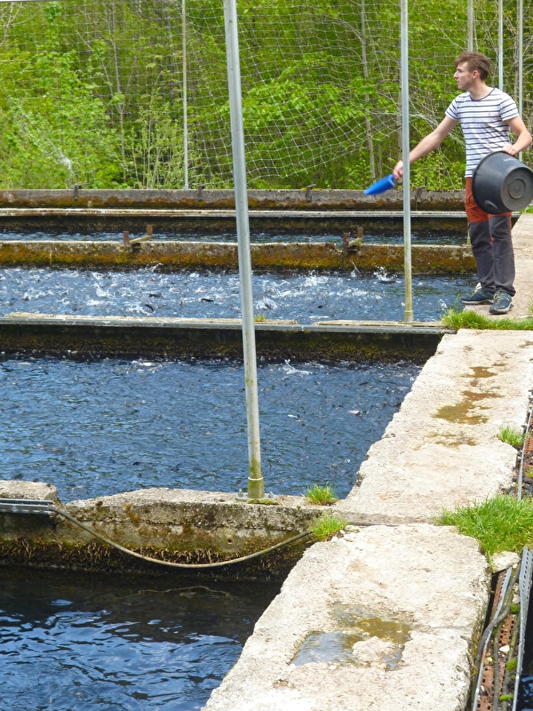 En été, on peut y jeter une ligne et repartir avec sa pêche, après avoir fait le tour des bassins du Gaec Ducloux : le fonctionnement de l’exploitation est passionnant, depuis la fécondation jusqu’à l’arrivée du poisson à l’âge adulte.