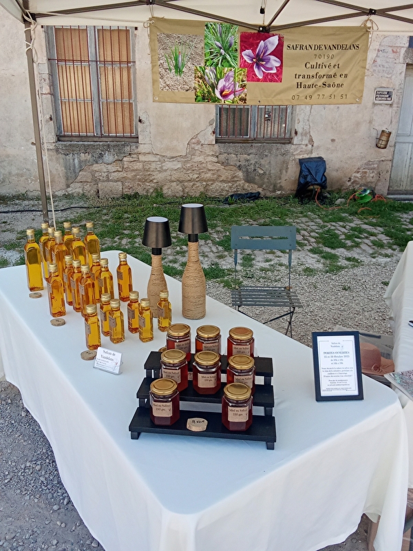 Sandrine Steiner est productrice de Safran à Vandelans. Elle vous propose différents produits, des pistils, du miel de safran, du sirop de safran... Elle propose également des plateaux cadeaux avec différents produits.