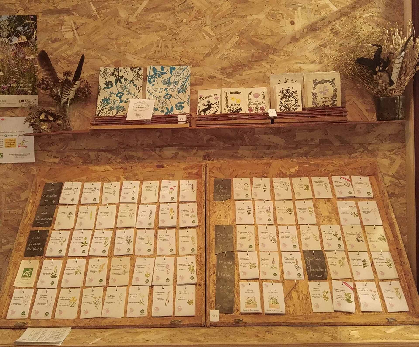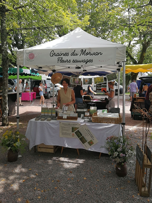 Virginie propose des sachets de graines, coffrets de graines et cartes à semer artisanales, bénéficiant de la Marque Valeurs Parc du Morvan et Végétal Local. Les graines sont collectées localement autour de Saulieu.