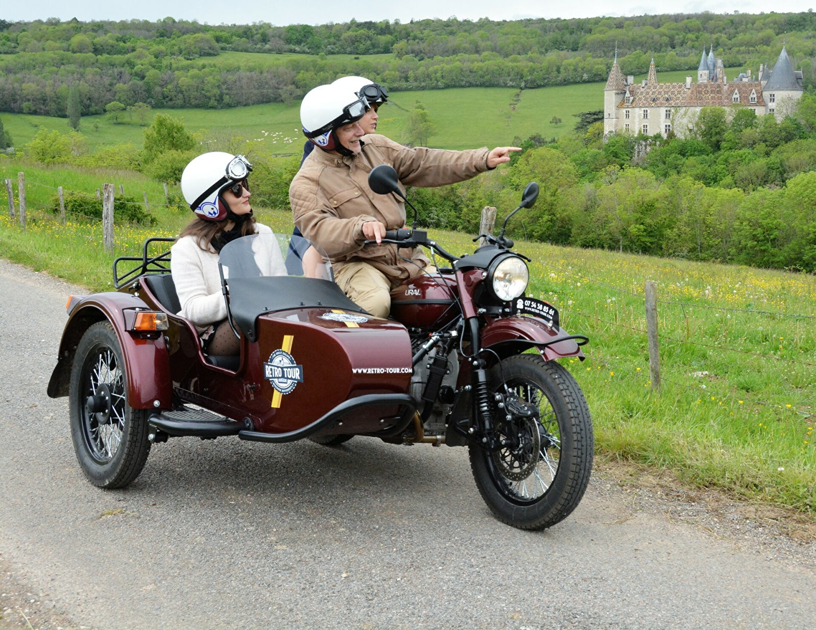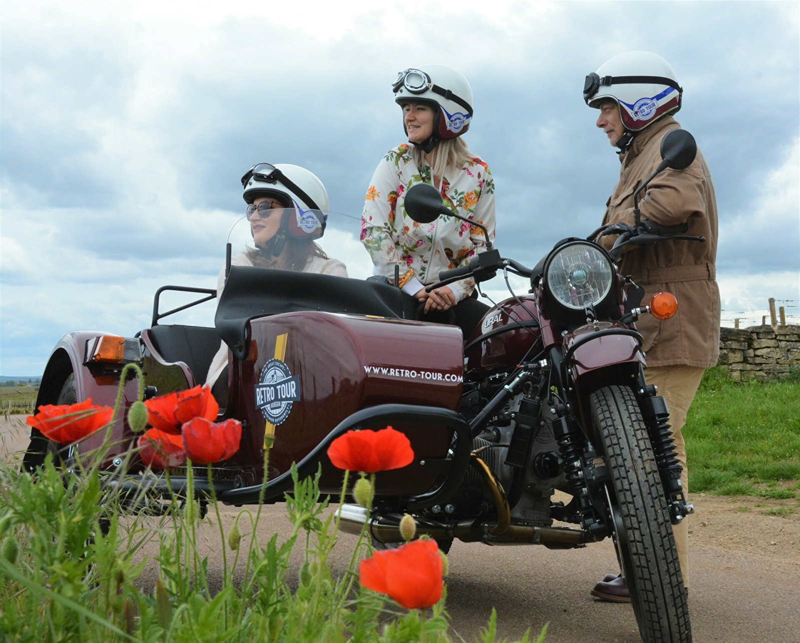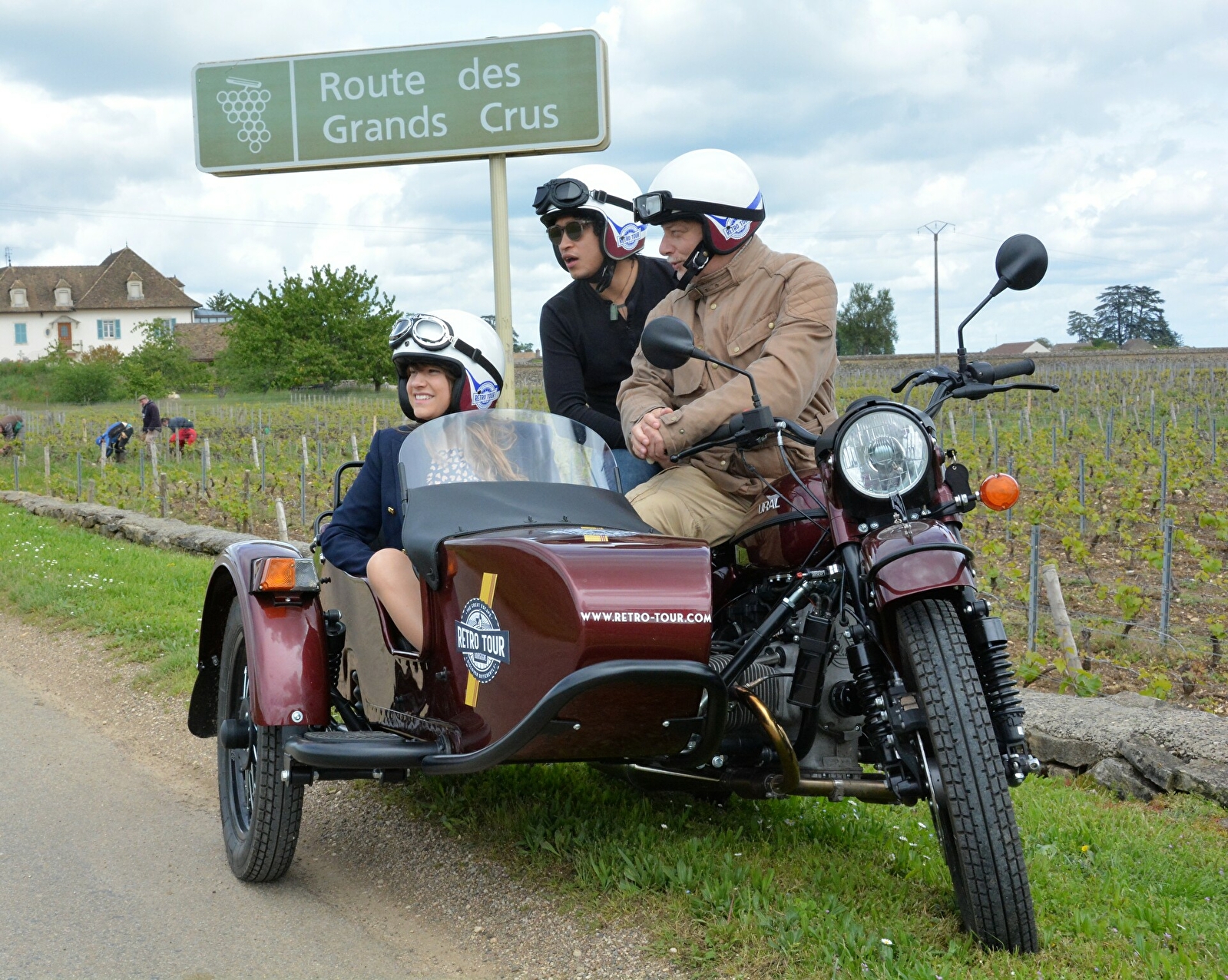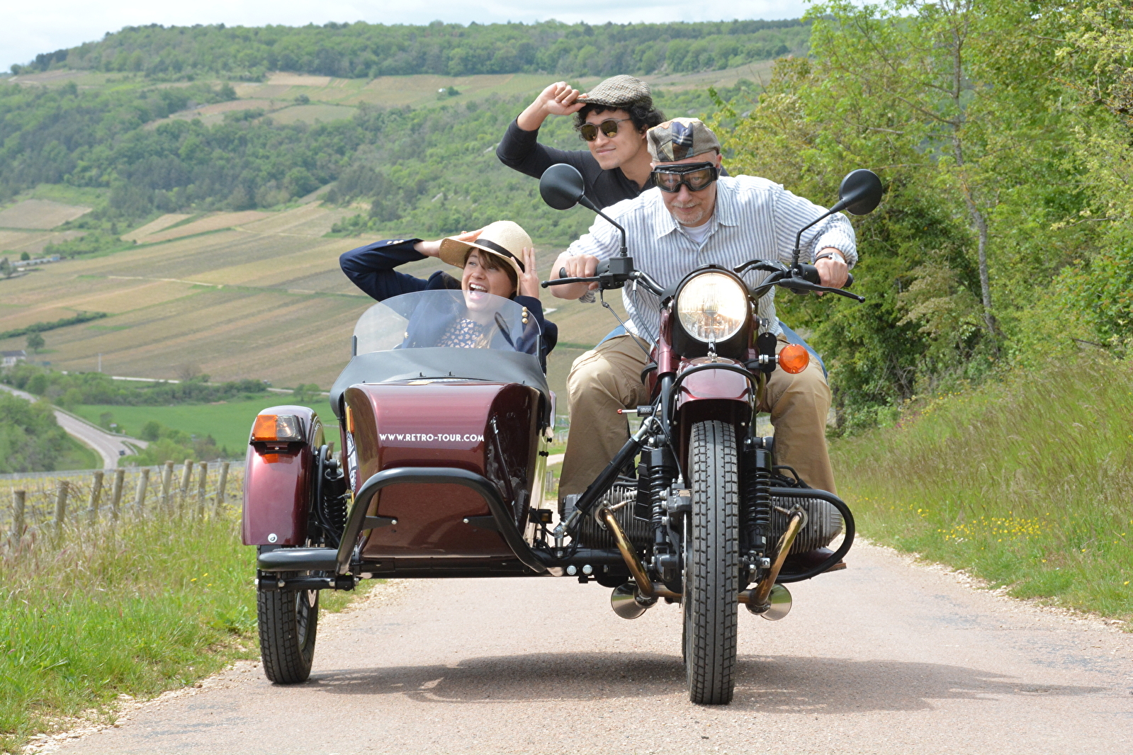 Découverte du patrimoine paysager viticole et architectural du Pays Beaunois à bord d'un side-car vintage. Dans le plus pur style "Grande Vadrouille" cher aux cinéphiles, l'objectif est d'offrir une expérience immersive, sur mesure et originale avec un véhicule alliant charme et touche rétro tout en proposant des commentaires pertinents et décalés.