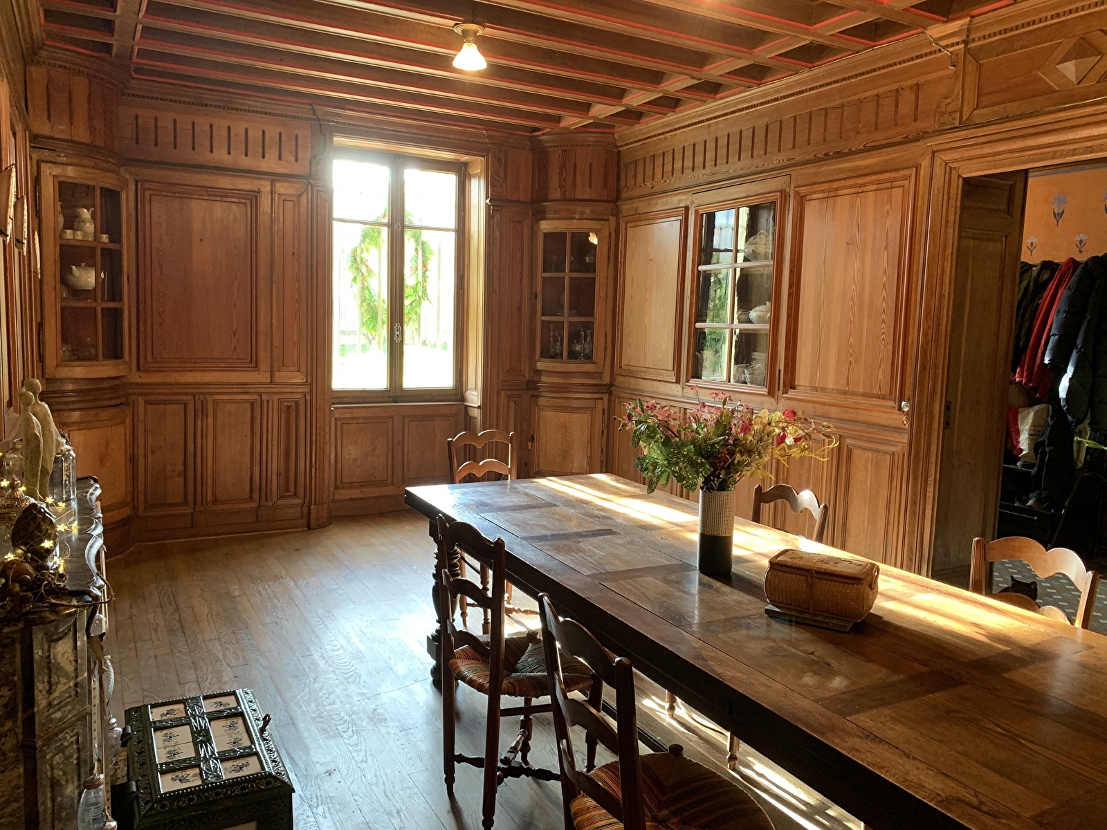 Vous pouvez vous détendre dans le grand salon du château, boire un verre, lire, discuter. Vous prendrez un délicieux petit déjeuner de produits locaux et fait maison dans la salle à manger toute en boiserie. Possibilité de dîner sur réservation.