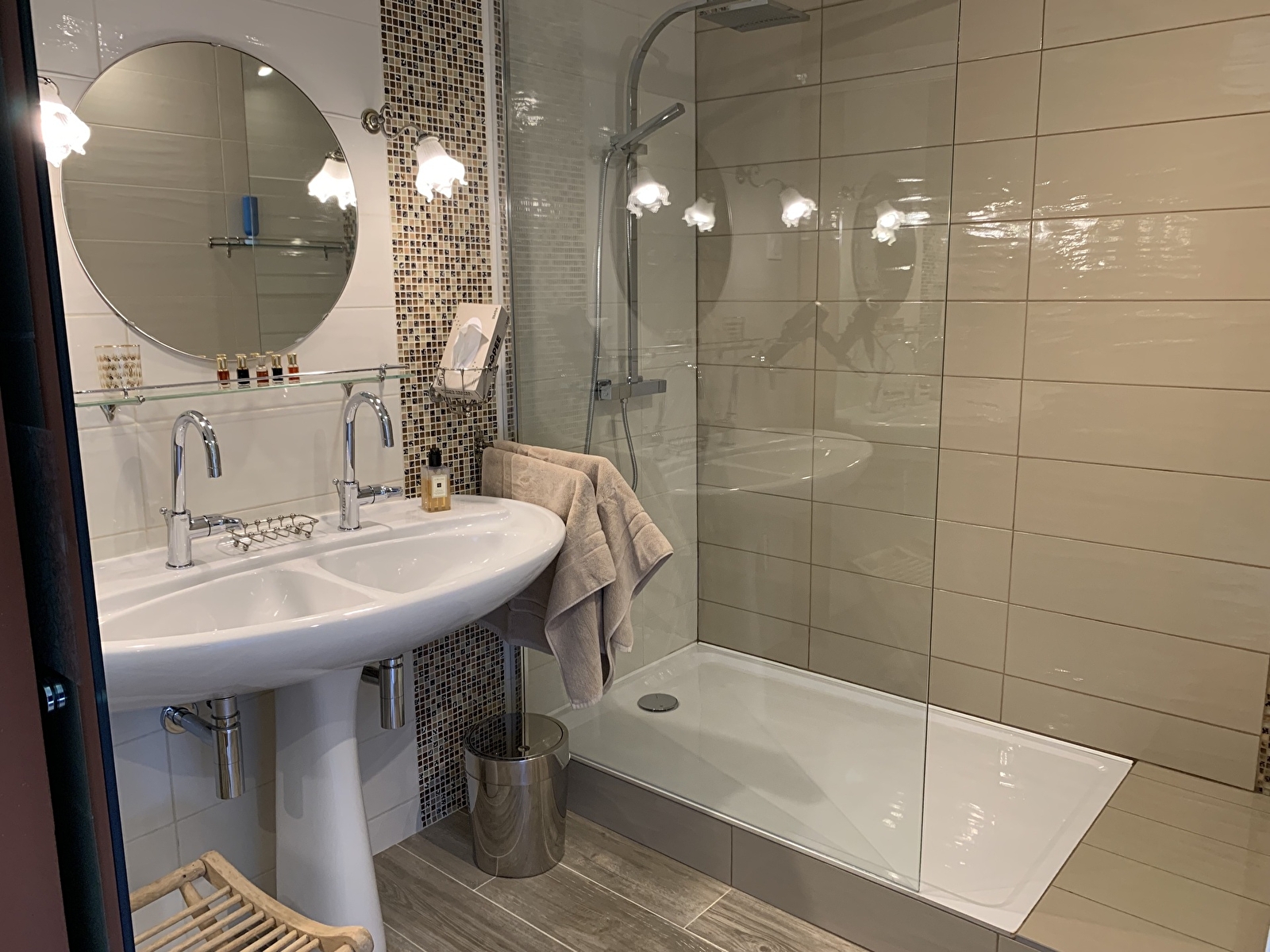 Les 2 chambres sont spacieuses (50m2) et luxueuses. Vous accédez à chaque chambre par un petit hall privatif où vous pourrez vous faire un thé, un café, déguster les gâteaux fait maison. Chaque chambre comprend des lits de qualité hôtelière 4*, 2 oreillers par personne, des draps en lin, du linge de toilette moelleux et une salle de bain moderne très confortable avec une grande douche, et une baignoire pour la suite Victor. Dans chaque chambre, les toilettes sont séparés de la salle de bain.