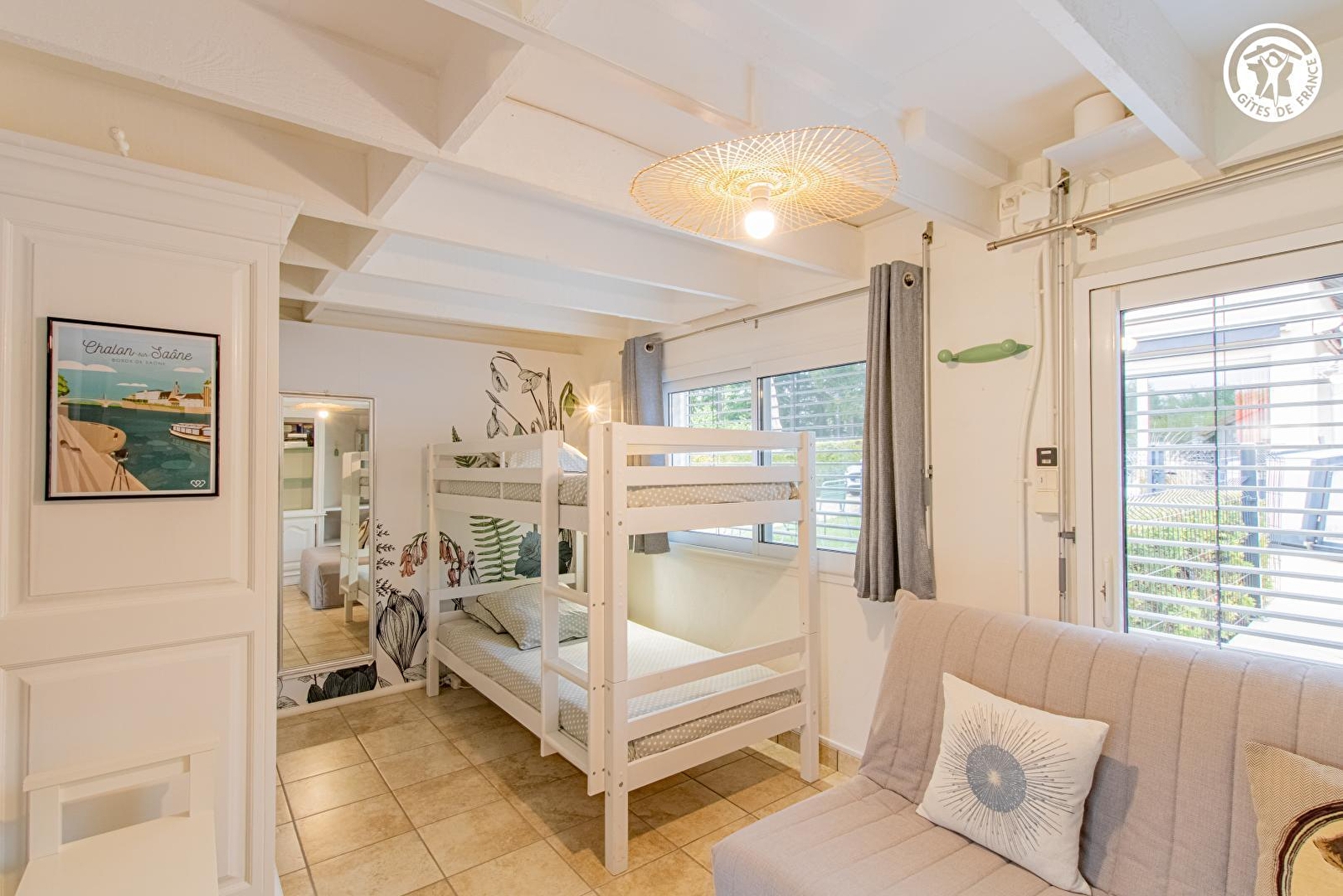 Œnophiles avisés (notamment en crus de Bourgogne) & globe-trotteurs passionnés de voyages, Kate & Joël vous accueillent au sein d’une ravissante authentique demeure de caractère de 1850 soigneusement restaurée - adossée à un élégant chalet contemporain d’esprit "cottage" - blottie au calme, en bordure de ruelle en plein cœur d’un paisible quartier résidentiel, sur une vaste propriété chargée d’histoire (dépendance jadis de la scierie traditionnelle voisine dont demeure l’imposante cheminée en briques et le four classés). Totale tranquillité à deux pas du pittoresque centre bourg parfaitement sauvegardé (charmante église néo-romane, majestueux château du XVIIe, belles demeures traditionnelles, moulins à eaux, lavoir…), comme des vignobles & de la douce campagne viticole environnante. Chambre de bon confort. Cachet campagnard contemporain d’inspiration scandinave, moelleux & chaleureux. Ambiance zen & douce. Magnifique propriété close de 2500m² (avec portail électrique) littéralement "tirée au cordeau", soigneusement végétalisée, arborée & fleurie (bacs de plantes aromatiques, mirabellier, prunier, pommier & cerisier / cueillette possible) comprenant une belle piscine chauffée avec douche (8x4m), terrain de pétanque, filet de volley/badminton, mini cages de foot & table de ping-pong. Littéral paradis pour les enfants.