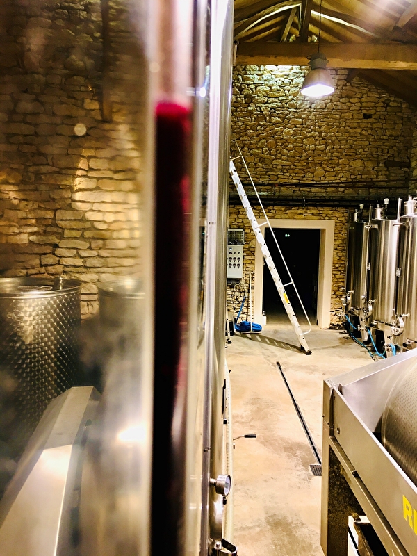 - Une dégustation des vins dans le cuvage directement sur les cuves.