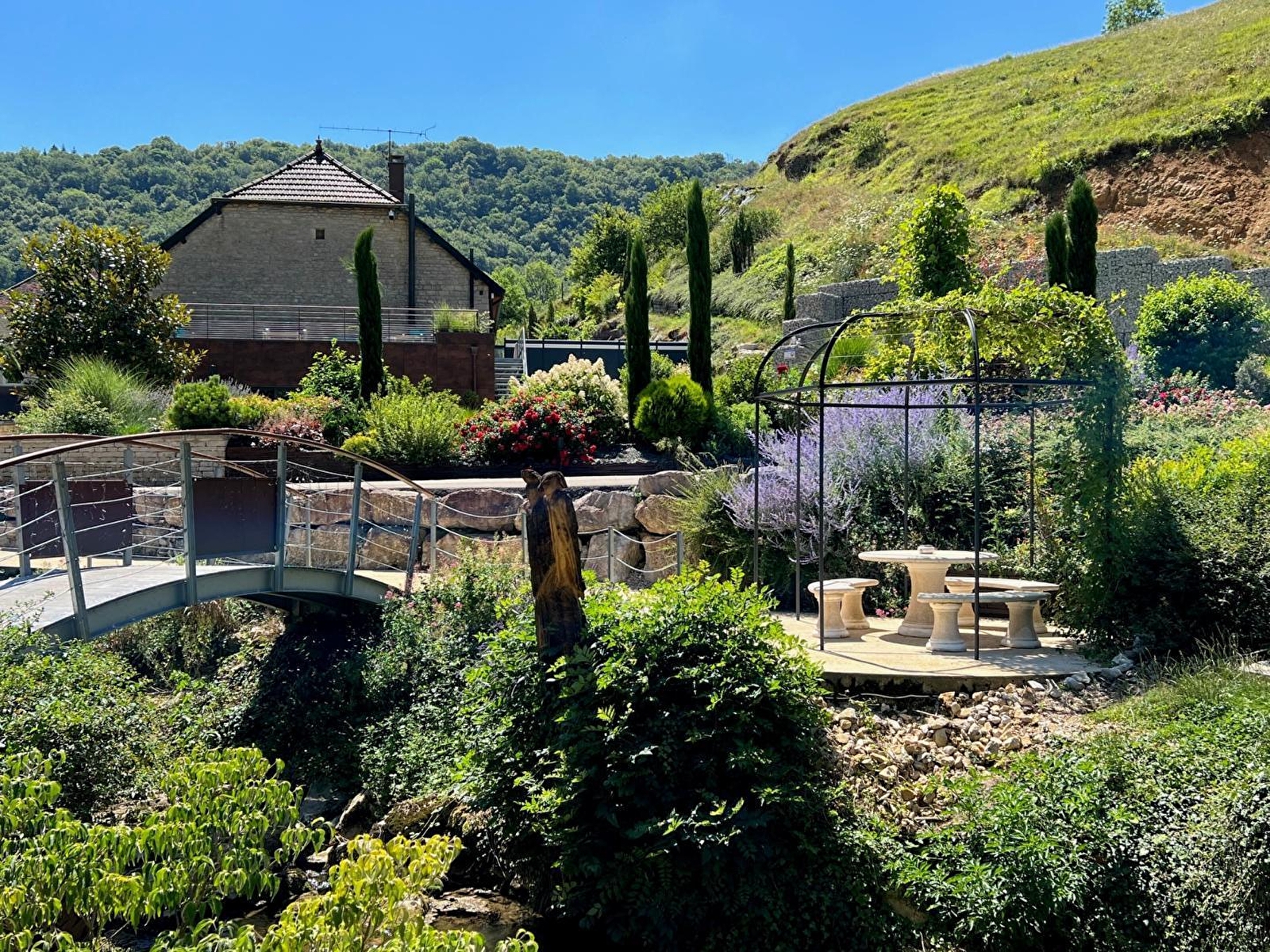 Au coeur de cette vallée discrète, à deux pas de la Station Thermale de Salins les Bains, cette ancienne ferme du XVIII ème siècle entièrement rénovée vous propose une invitation à la détente, au ressourcement et au bien-être. Les chambres climatisées pour 2 pers avec sanitaires privés sont toutes équipées de literies (180x200). L'une dispose d'une baignoire équipée de la balnéothérapie et chromothérapie. Deux autres disposent d'une terrasse privative avec un jacuzzi et deux autres sont équipées d'un sauna. La dernière dispose d'un lit baldaquin avec une literie TEMPUR. Vous apprécierez l'accueil chaleureux des propriétaires, le confort, la déco raffinée et les espaces extérieurs avec un parc zen ou la magie de l'eau et de la lumière sauront vous charmer, sans oublier le kneipwalk pour marcher sur le chemin du bien-être.